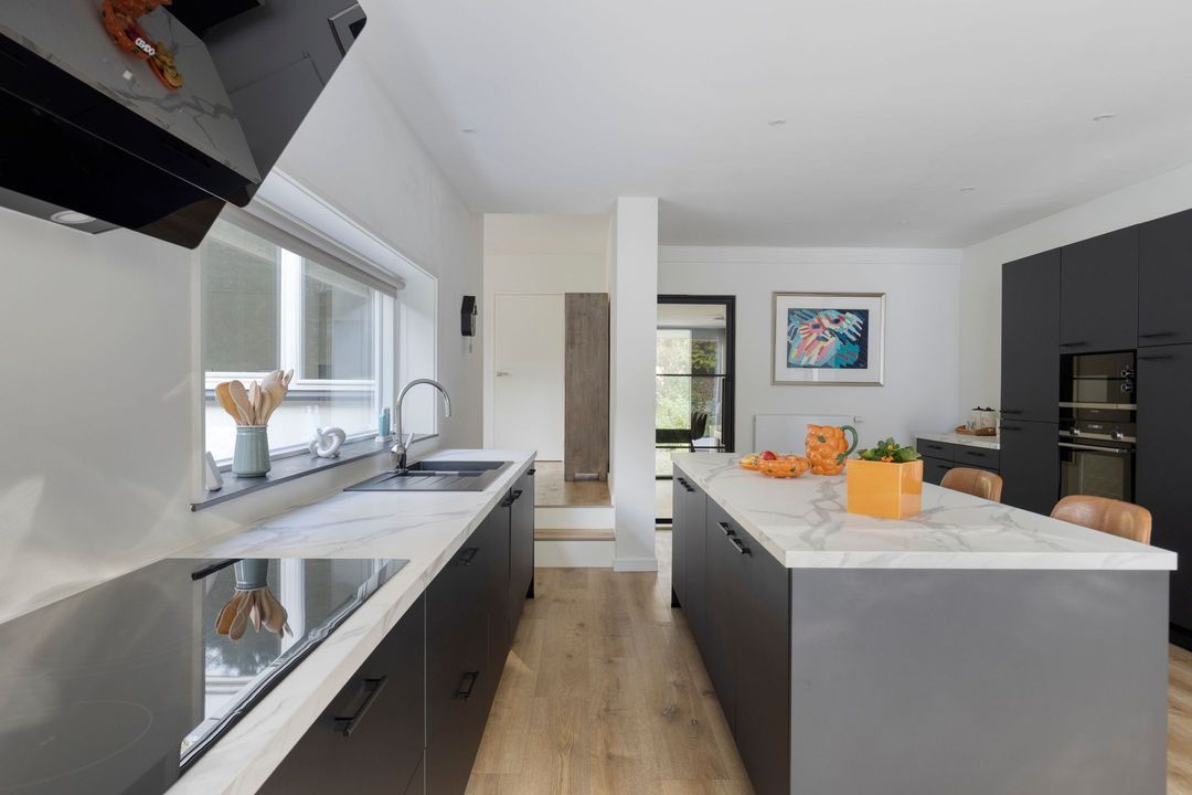 Via de imposante oprijlaan bereikt u de villa, omgeven door een schitterende tuin met veranda en meerdere zonneterrassen. Binnen treft u een strak en modern interieur: een pvc-vloer door de gehele woning, nieuw gestuukte wanden en plafonds, en een moderne keuken en badkamer. De tuin is eveneens volledig opnieuw aangelegd en voorzien van een beregeningsinstallatie. Kortom: een strakke, eigentijdse villa met veel ruimte, comfort en een toplocatie in het bosrijke Hattem.