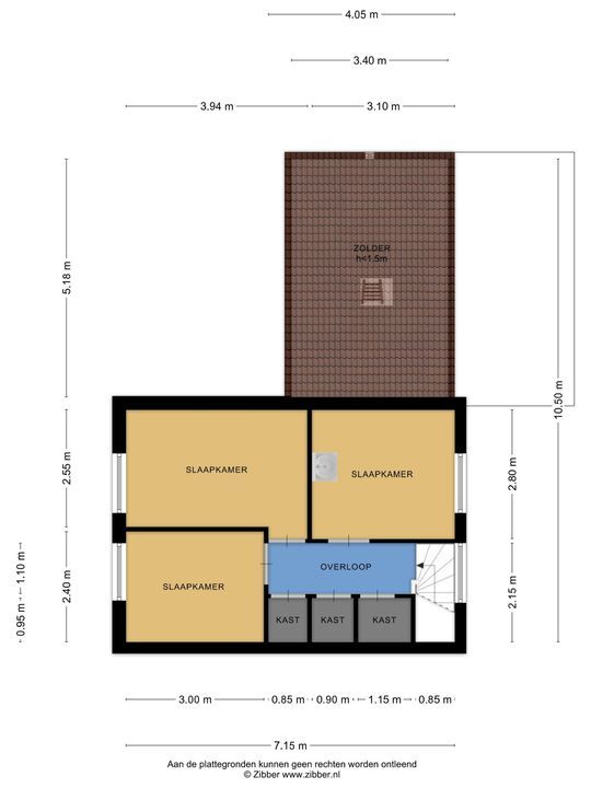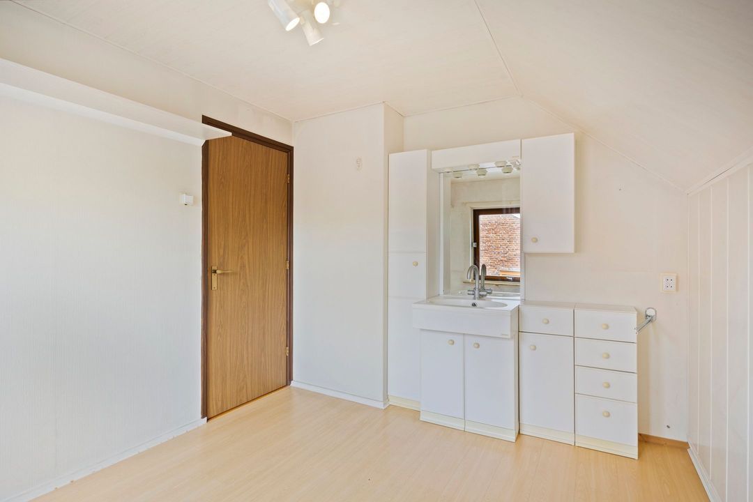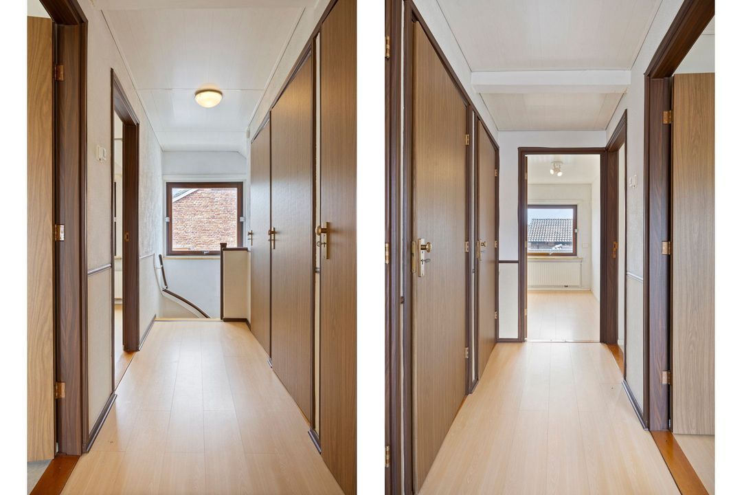 Overloop met vaste kasten. Drie slaapkamers, waarvan er één is voorzien van een wastafel.