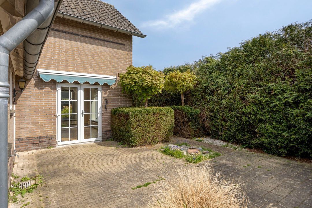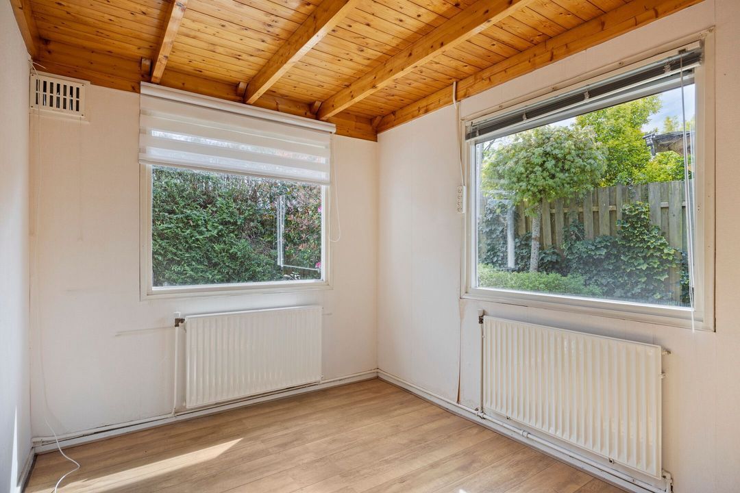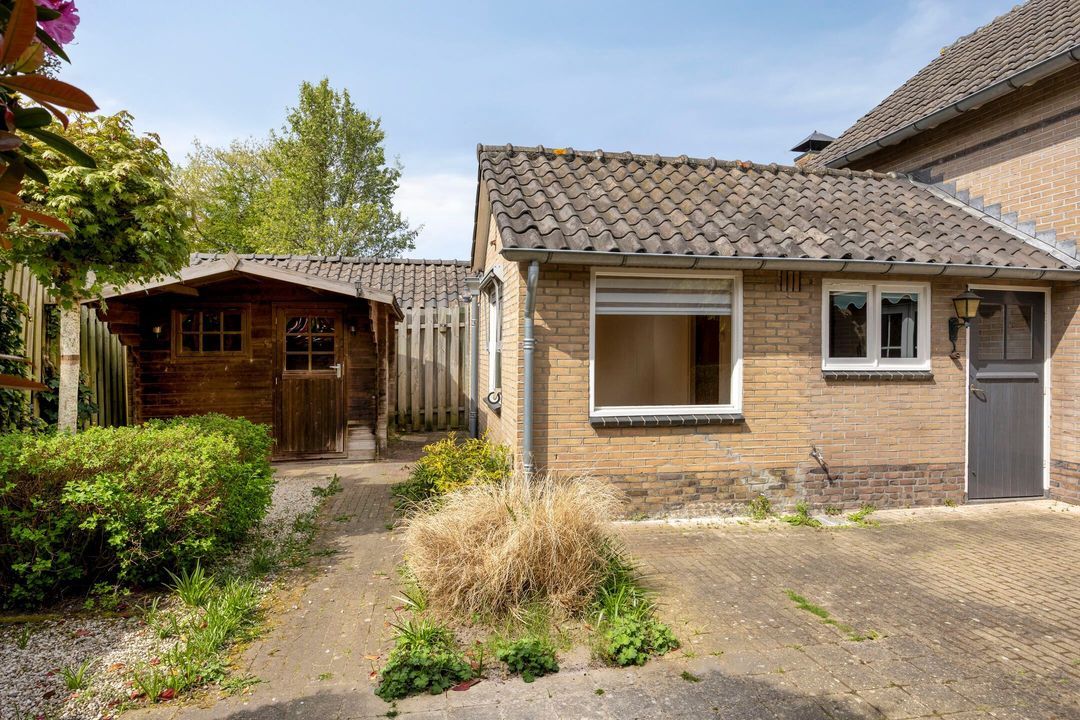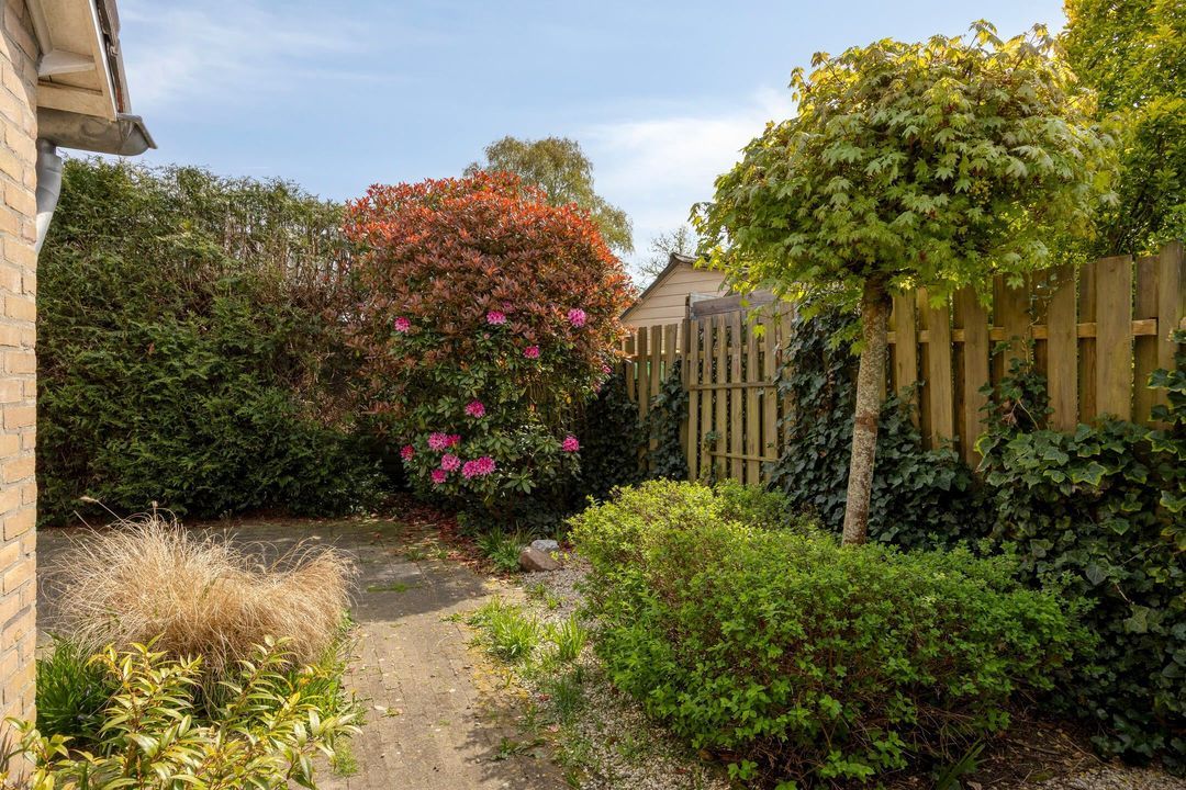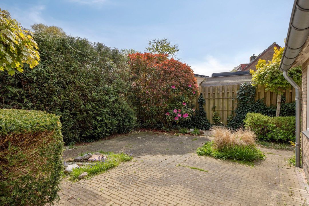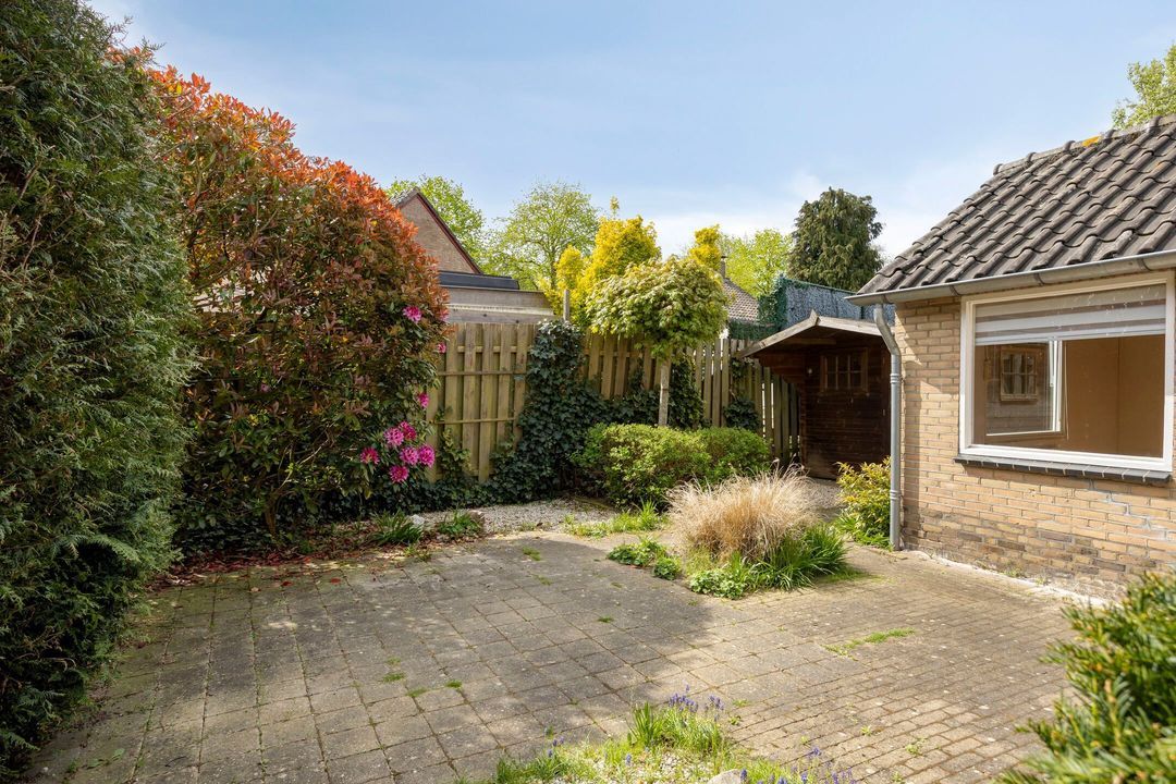 Zonnige en onderhoudsvriendelijke achtertuin met houten tuinhuis op het zuiden en veel privacy. Tevens aan de voorzijde een eigen oprit en toegang tot de garage.