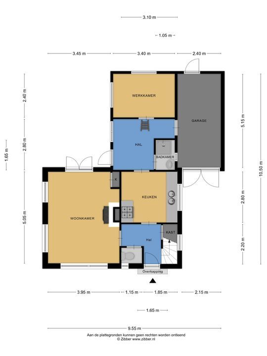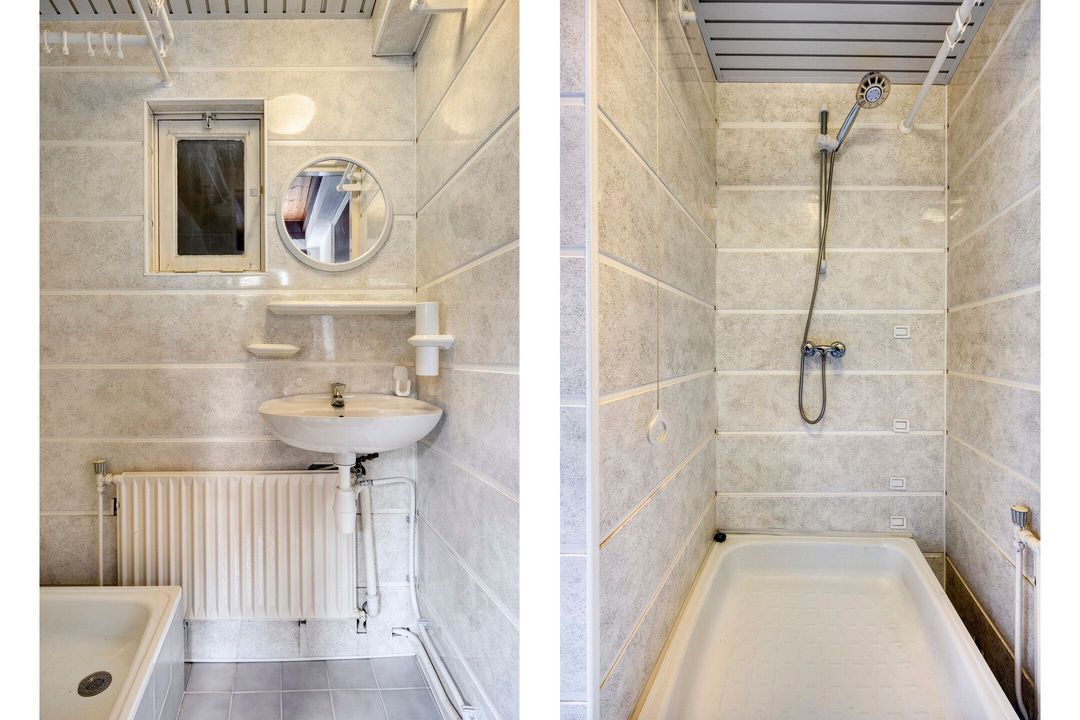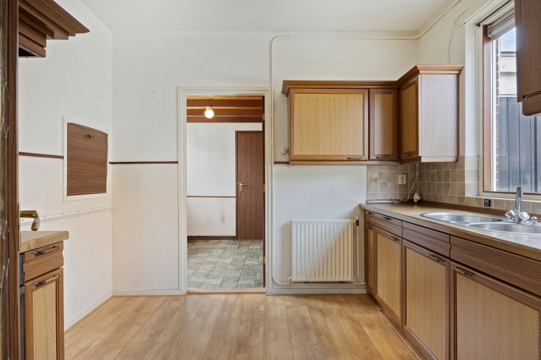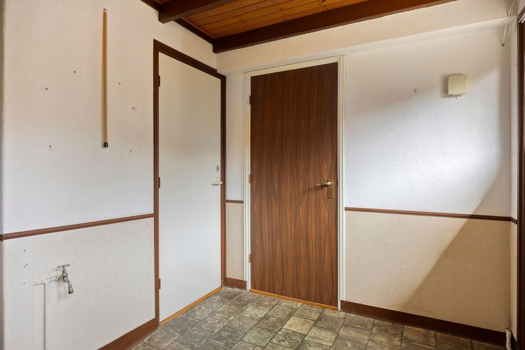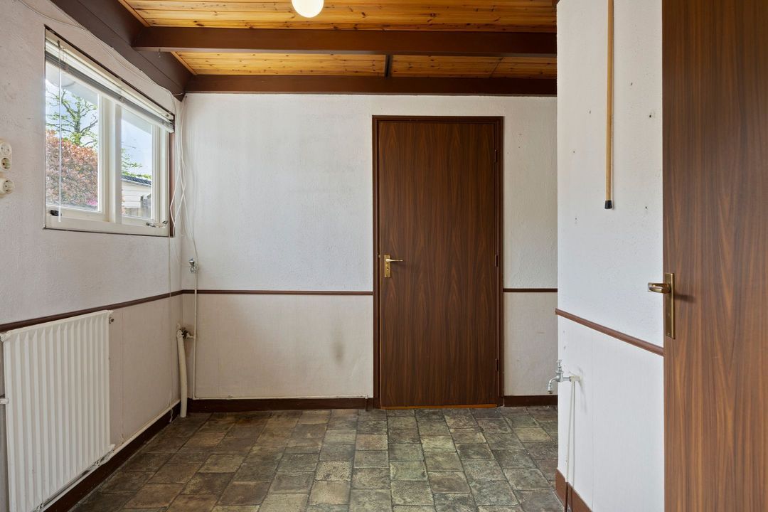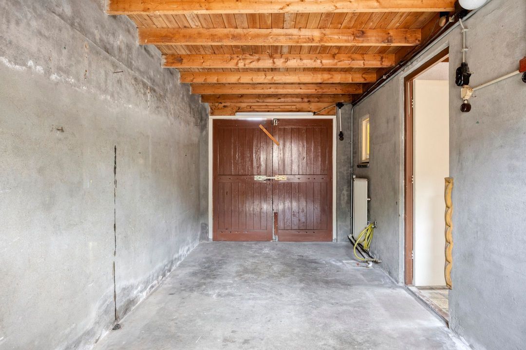Entree/hal met trapopgang, meterkast en toilet. Lichte en straatgerichte woonkamer met grote raampartijen en openslaande deuren richting de tuin. Dichte keuken voorzien van diverse apparatuur en een doorgeefluik richting de woonkamer. Achterportaal/bijkeuken met luik naar bergzolder. Doucheruimte met wastafel, werkkamer en een doorgang naar de inpandige garage.