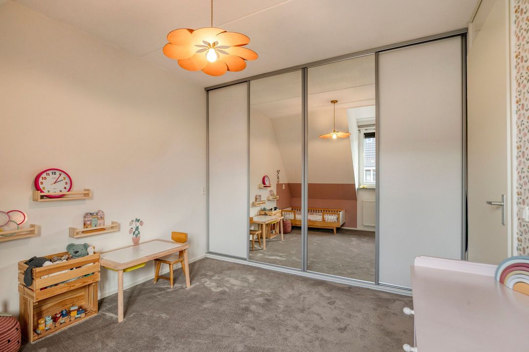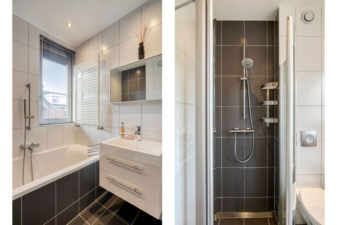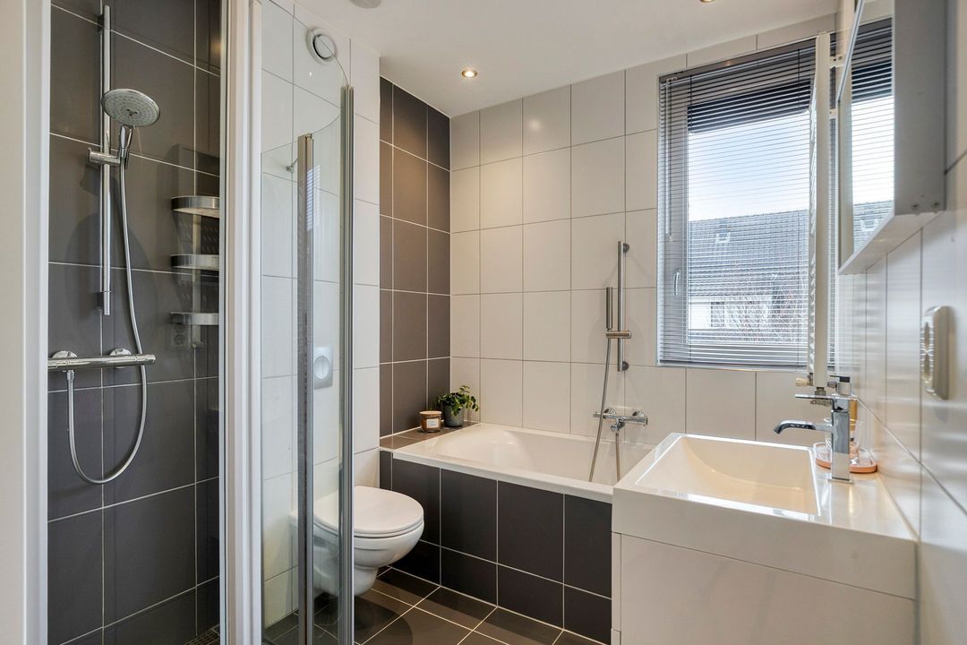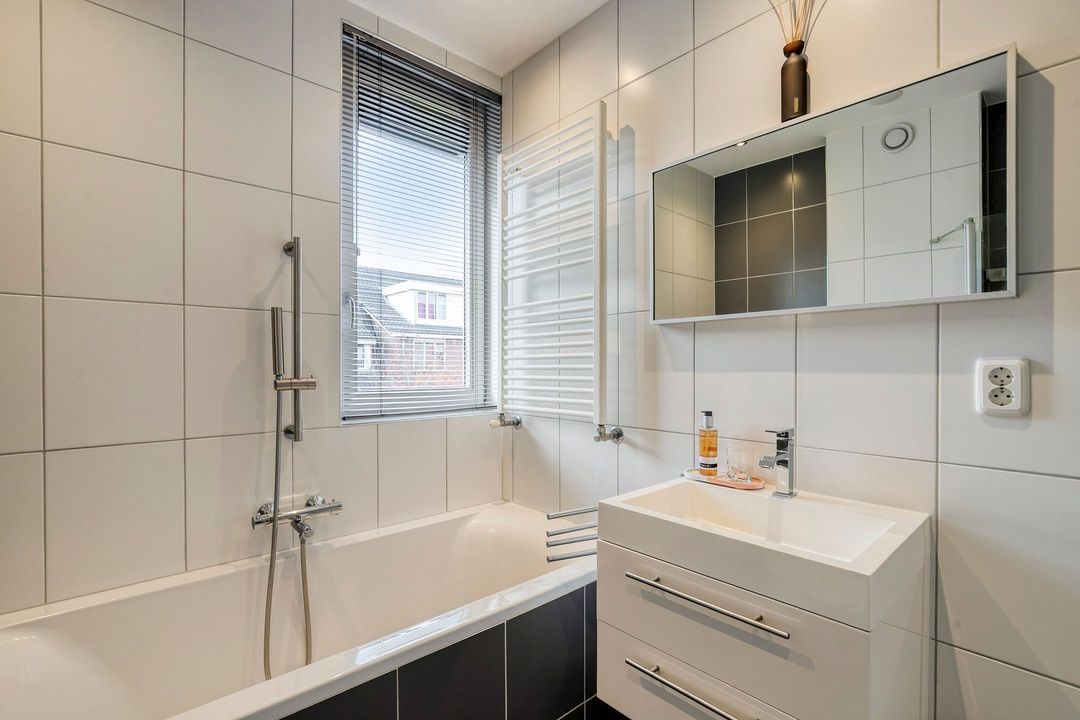 Op de eerste verdieping bevinden zich drie royale slaapkamers, ieder met volop ruimte en lichtinval. De moderne badkamer is van alle gemakken voorzien en beschikt over een ligbad, een douche, een tweede toilet en een stijlvol wastafelmeubel. Deze verdieping biedt een comfortabele en praktische indeling, perfect voor het gezin en gasten.