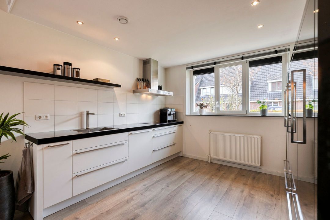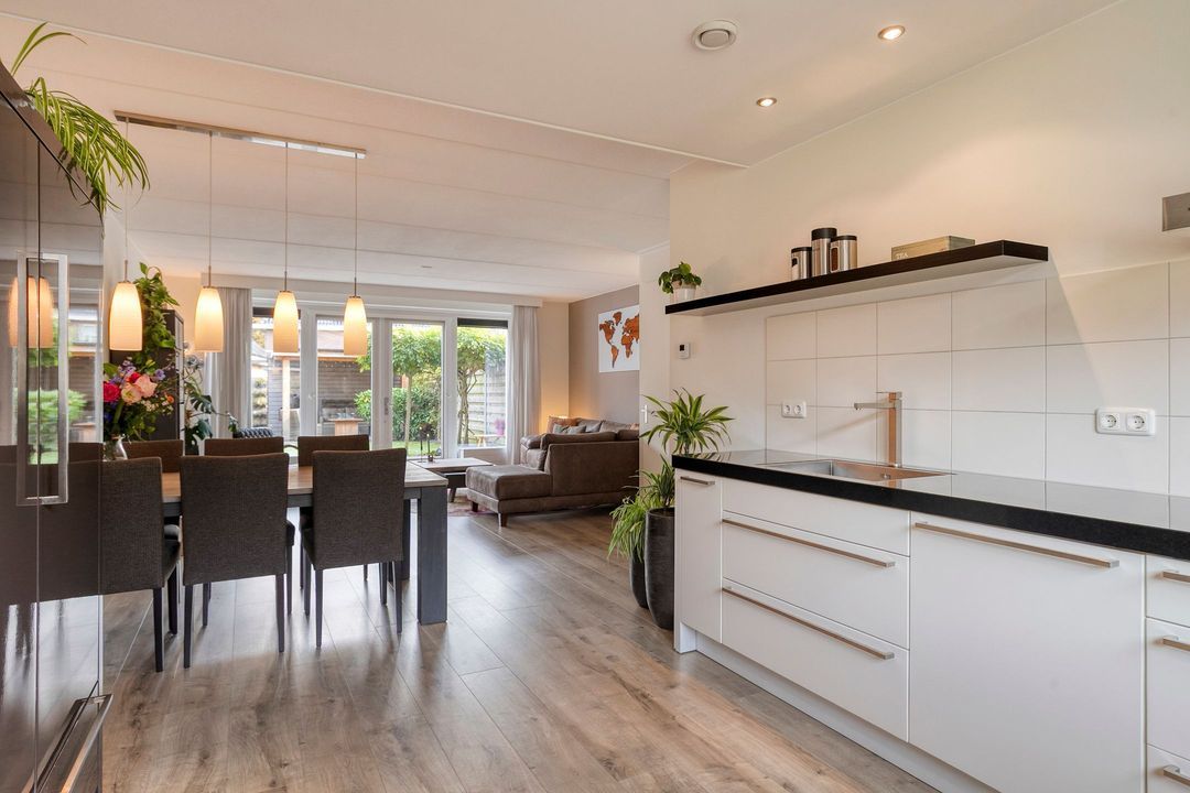 Bij binnenkomst treft u een royale hal met de meterkast, garderoberuimte en een modern toilet. De woning beschikt over een ruime en lichte woonkamer, waarbij de woonkeuken aan de voorzijde is gesitueerd. De keuken is voorzien van diverse inbouwapparatuur en biedt een fraai uitzicht over de straat. Aan de achterzijde van de woning vindt u een comfortabele zithoek met openslaande deuren naar de achtertuin, waardoor binnen en buiten mooi met elkaar verbonden zijn. Voor extra bergruimte is er een praktische trapkast aanwezig, ideaal voor het opbergen van dagelijkse benodigdheden.