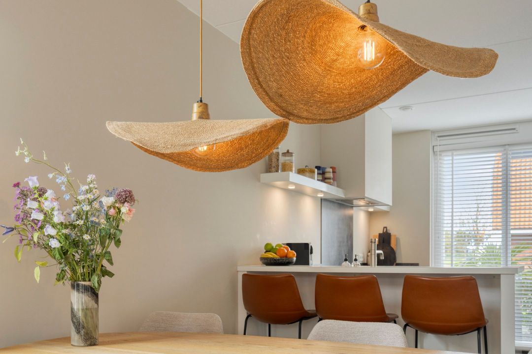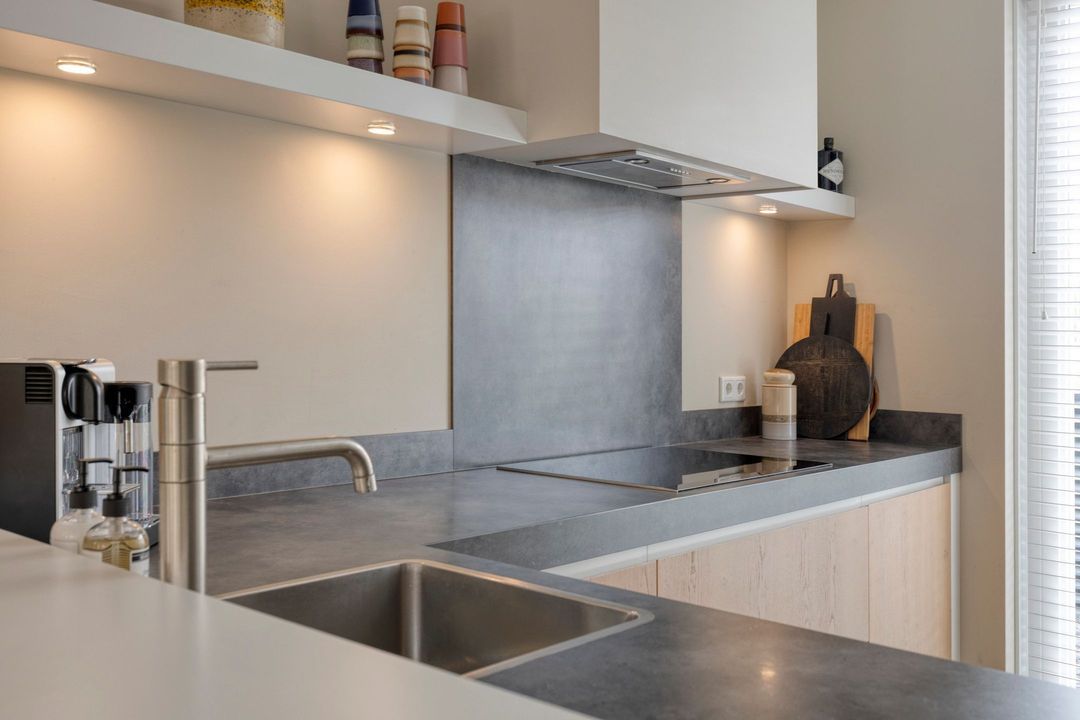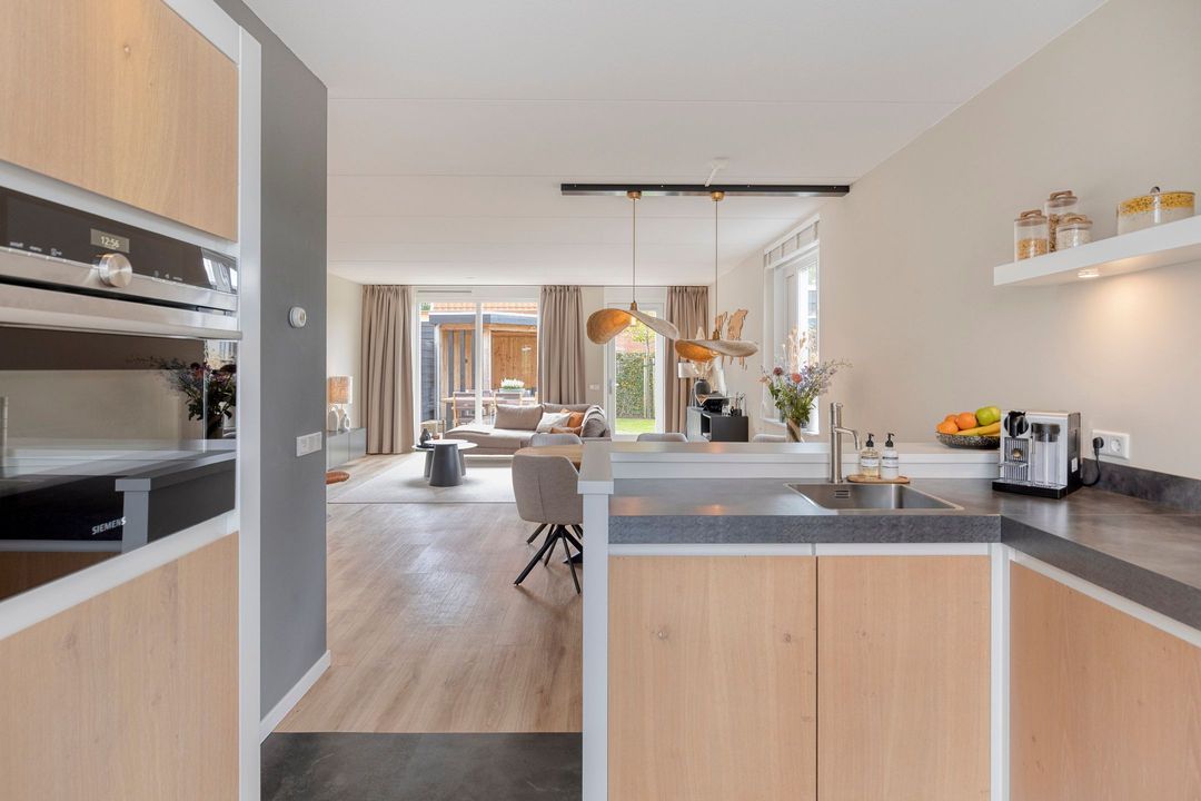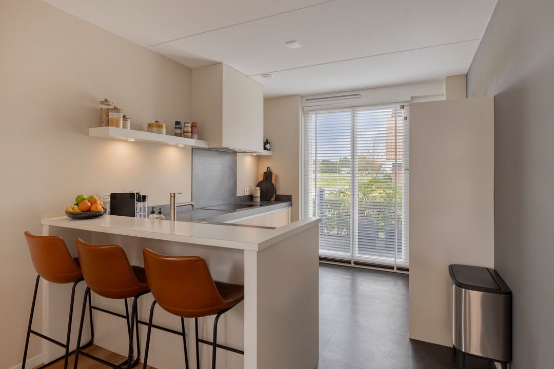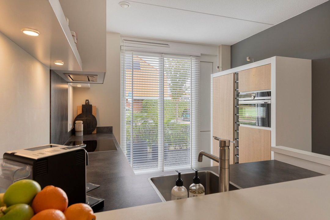 De moderne keuken is stijlvol afgewerkt en van alle gemakken voorzien, waardoor koken hier een plezier is. In de woonkamer is bovendien een praktische berging aanwezig, ideaal voor het netjes opbergen van dagelijkse spullen, waardoor het geheel oogt en aanvoelt als een comfortabel, goed doordacht thuis.