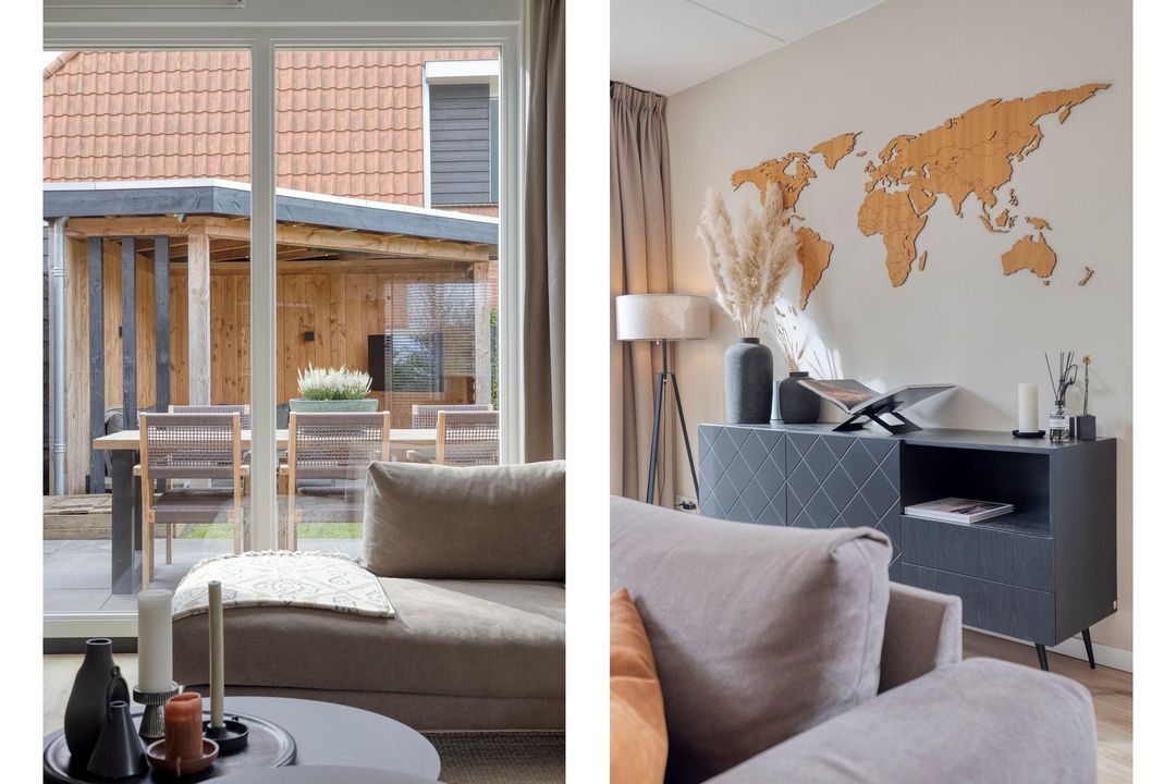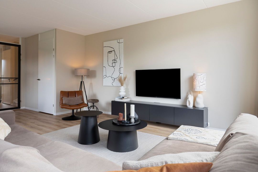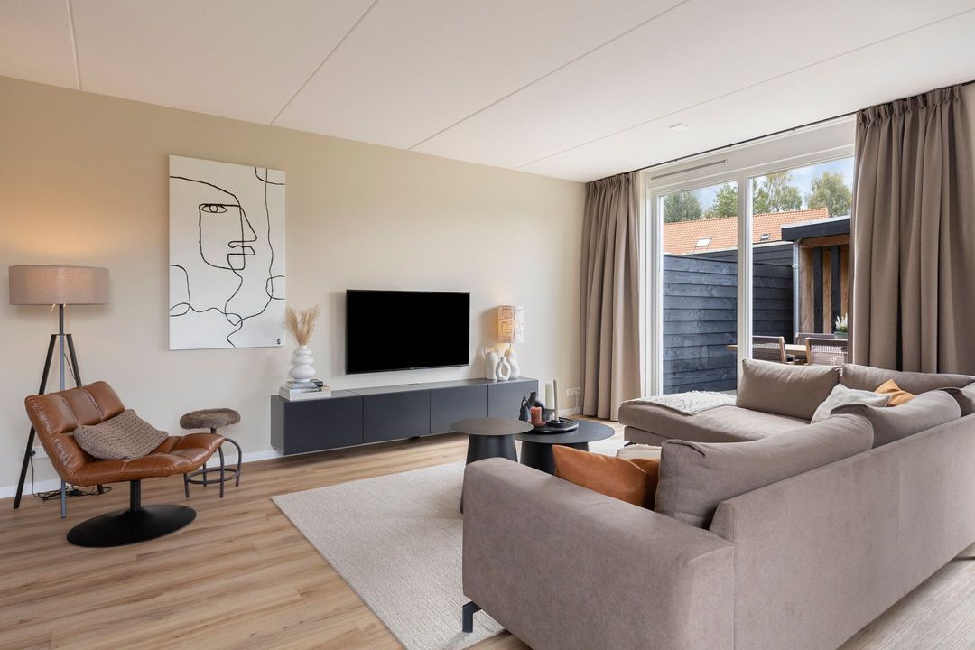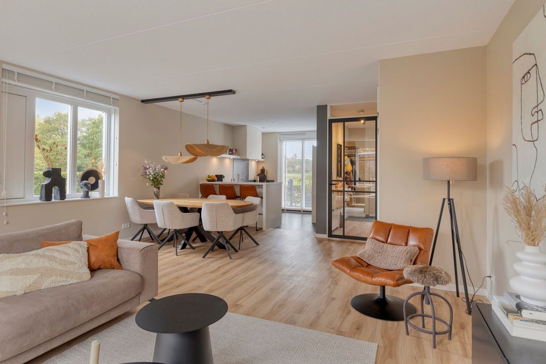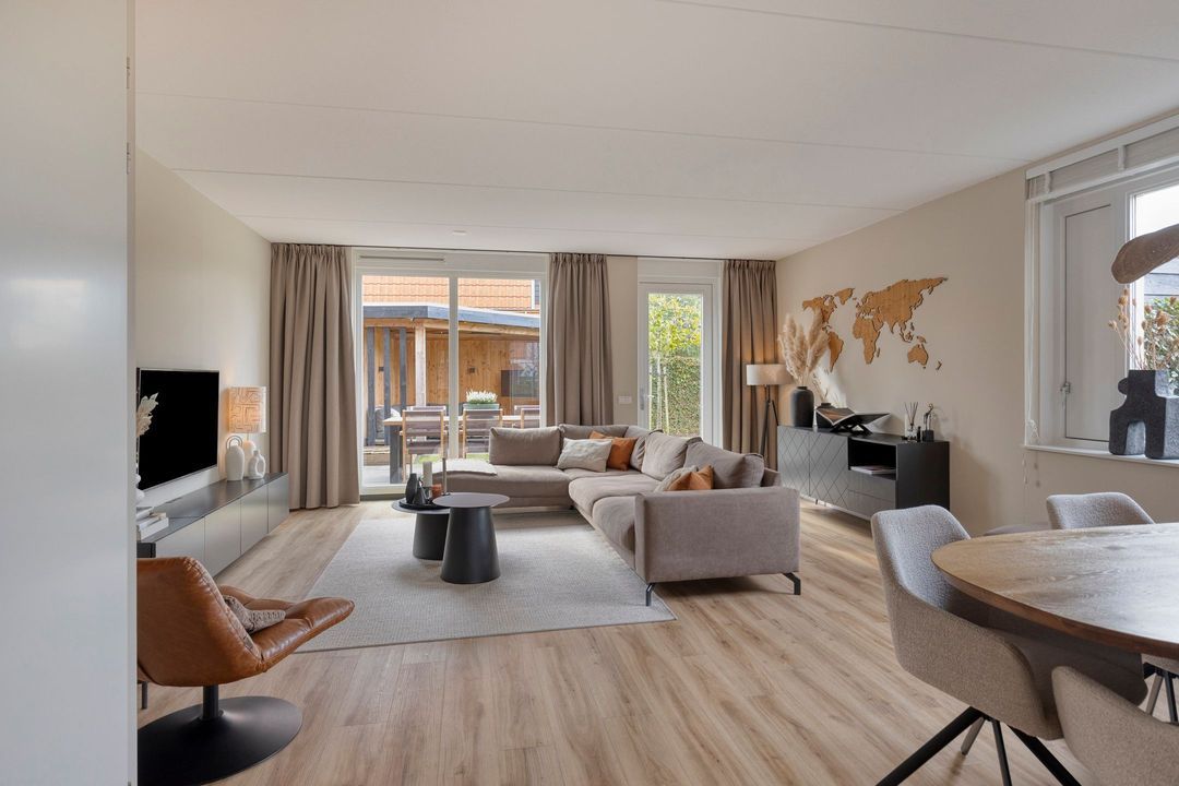 De moderne keuken is stijlvol afgewerkt en van alle gemakken voorzien, waardoor koken hier een plezier is. In de woonkamer is bovendien een praktische berging aanwezig, ideaal voor het netjes opbergen van dagelijkse spullen, waardoor het geheel oogt en aanvoelt als een comfortabel, goed doordacht thuis.