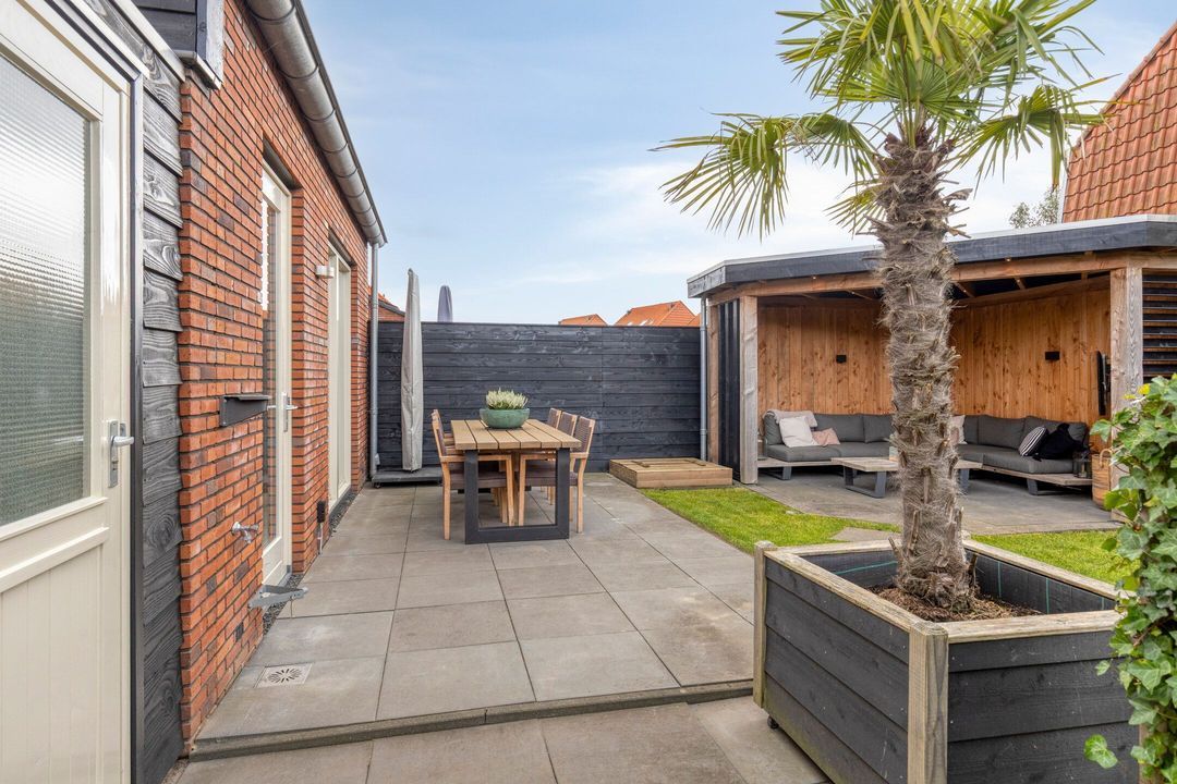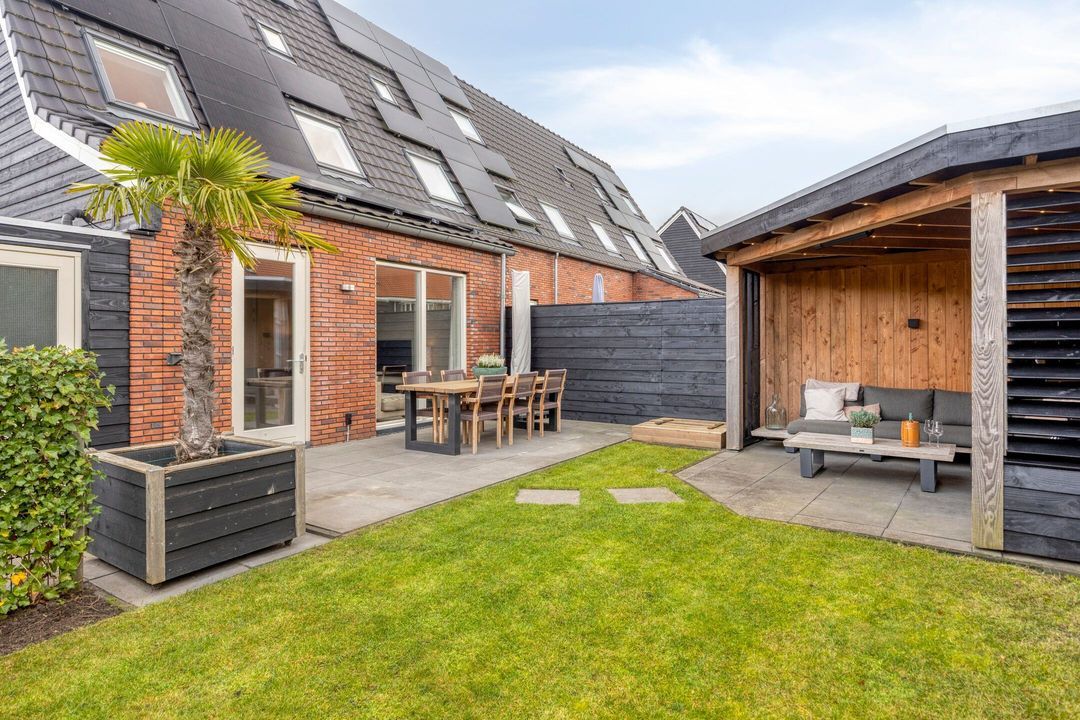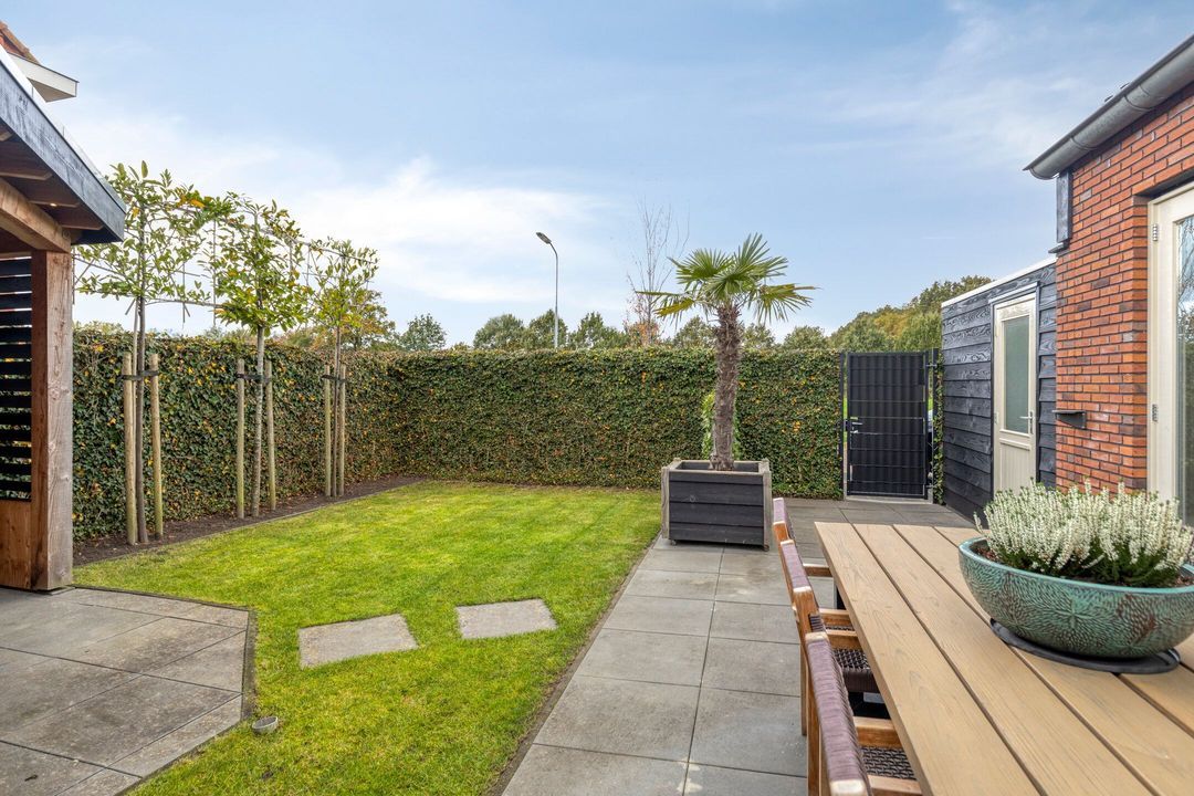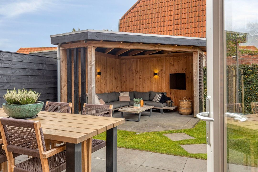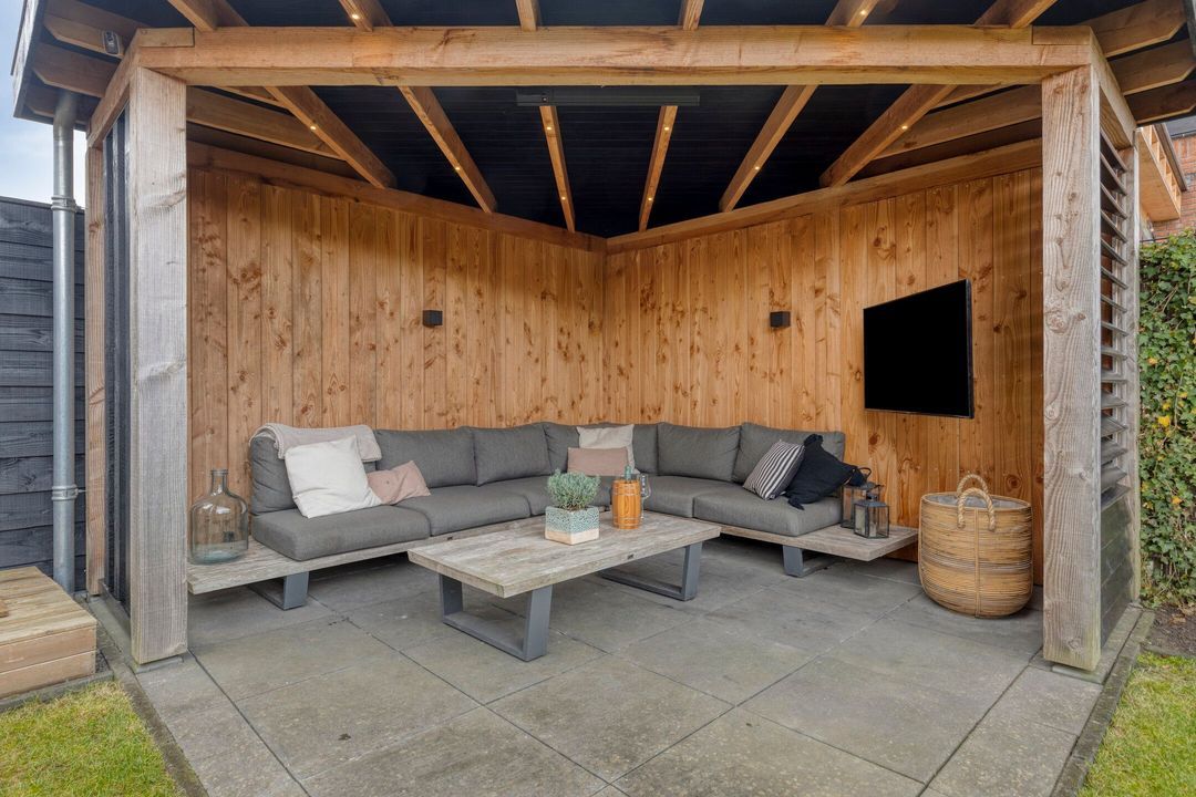 De tuin van de woning ligt op het zuidwesten en is een waar verlengstuk van het huis. Met diverse terrassen is er altijd een plekje in de zon te vinden. Het echte pronkstuk is de fraaie veranda, compleet met verwarming, spotjes en een eventuele aansluiting voor televisie, waardoor u ook op koelere avonden comfortabel buiten kunt genieten. Daarnaast is er een extra grote berging met elektra en een praktische achterom, ideaal voor fietsen, tuinspullen of andere opslagbehoeften. De tuin is smaakvol aangelegd en biedt volop ruimte voor ontspanning, privacy of gezellige borrels met familie en vrienden.