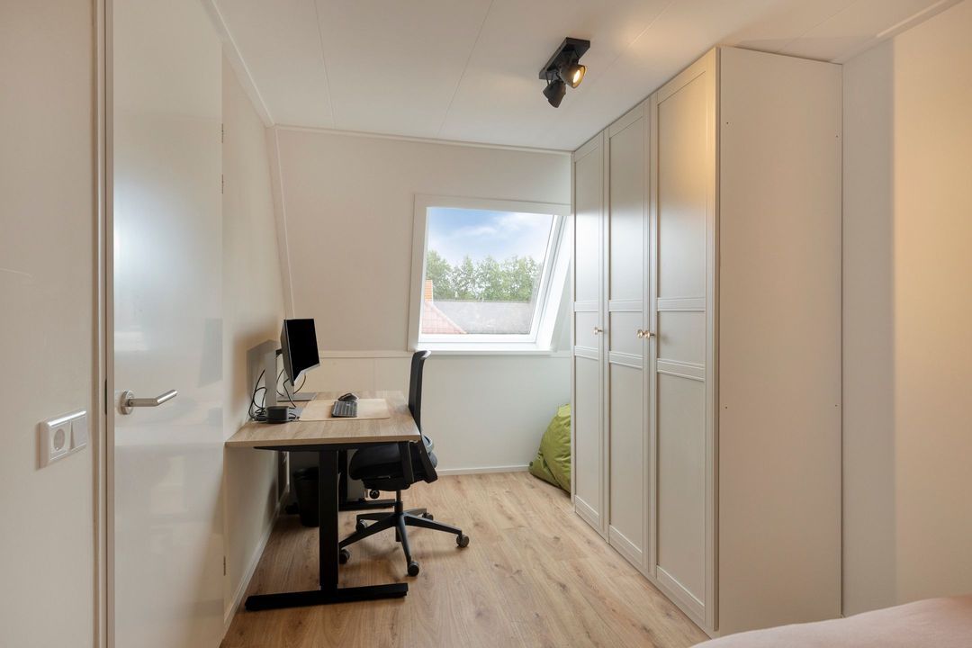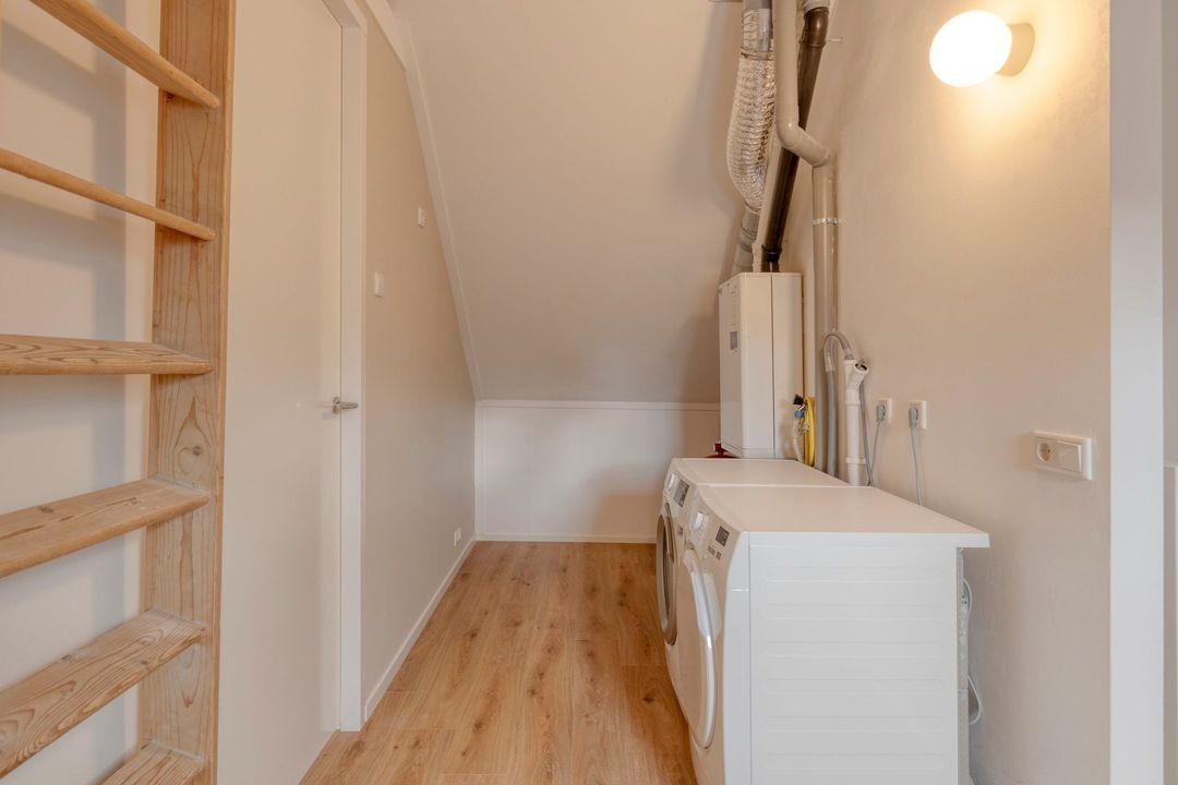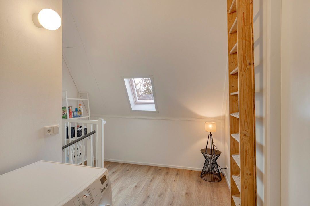 Via een vaste houten trap bereikt u de tweede verdieping. Hier komt u aan op een royale voorzolder met de opstelling van de cv-ketel en de aansluitingen voor de wasmachine en droger. Daarnaast is op deze verdieping een vierde slaapkamer gecreëerd, die zich uitstekend leent als kantoor, logeer- of hobbyruimte. Heeft u behoefte aan extra opbergruimte? Boven de kamer bevindt zich een handige vliering, bereikbaar via een losse trap, ideaal voor het netjes opbergen van seizoensspullen.