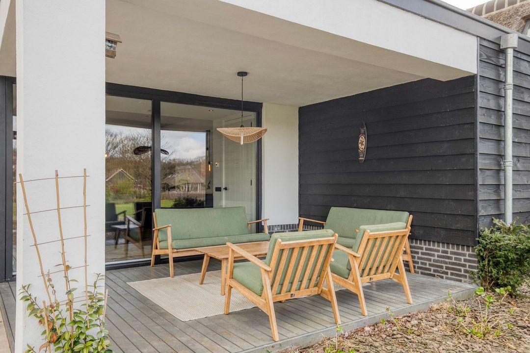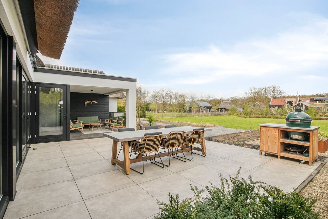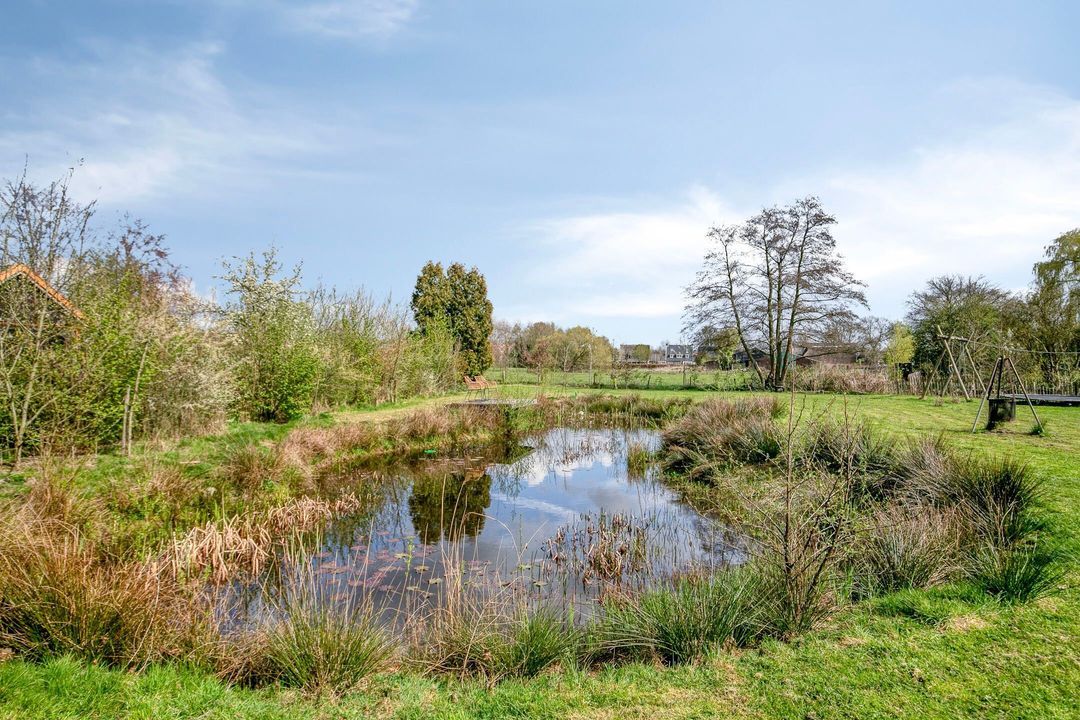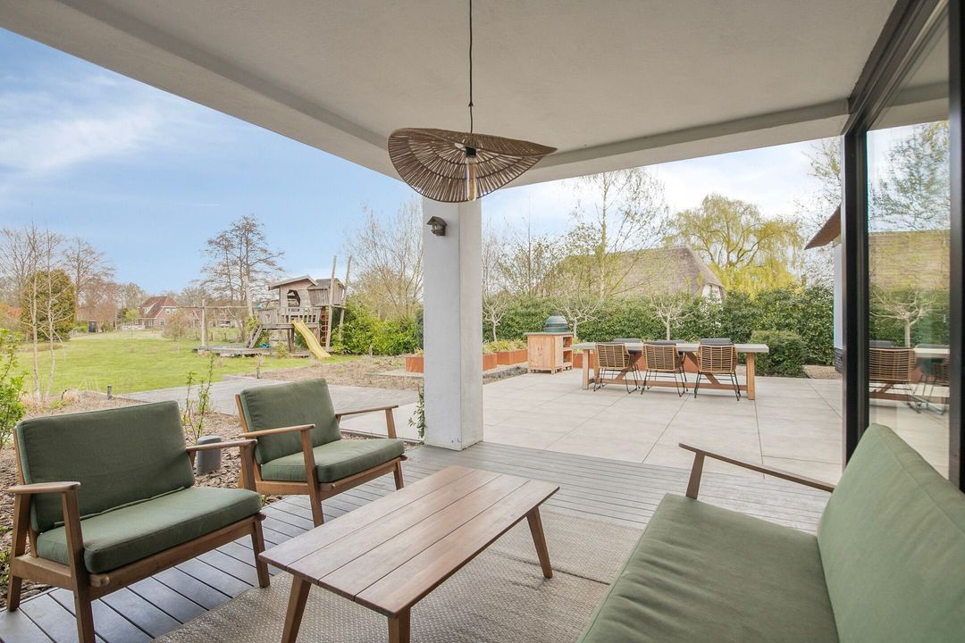 Ook buiten laat deze woning niets te wensen over. De fraai aangelegde tuin biedt volledige privacy en beschikt over meerdere terrassen, een sfeervolle veranda, een vijver en een royaal gazon met speeltoestel. Hier geniet u in alle rust van het buitenleven, omringd door groen en ruimte, met de uitgestrekte bossen van de Veluwe op loopafstand.