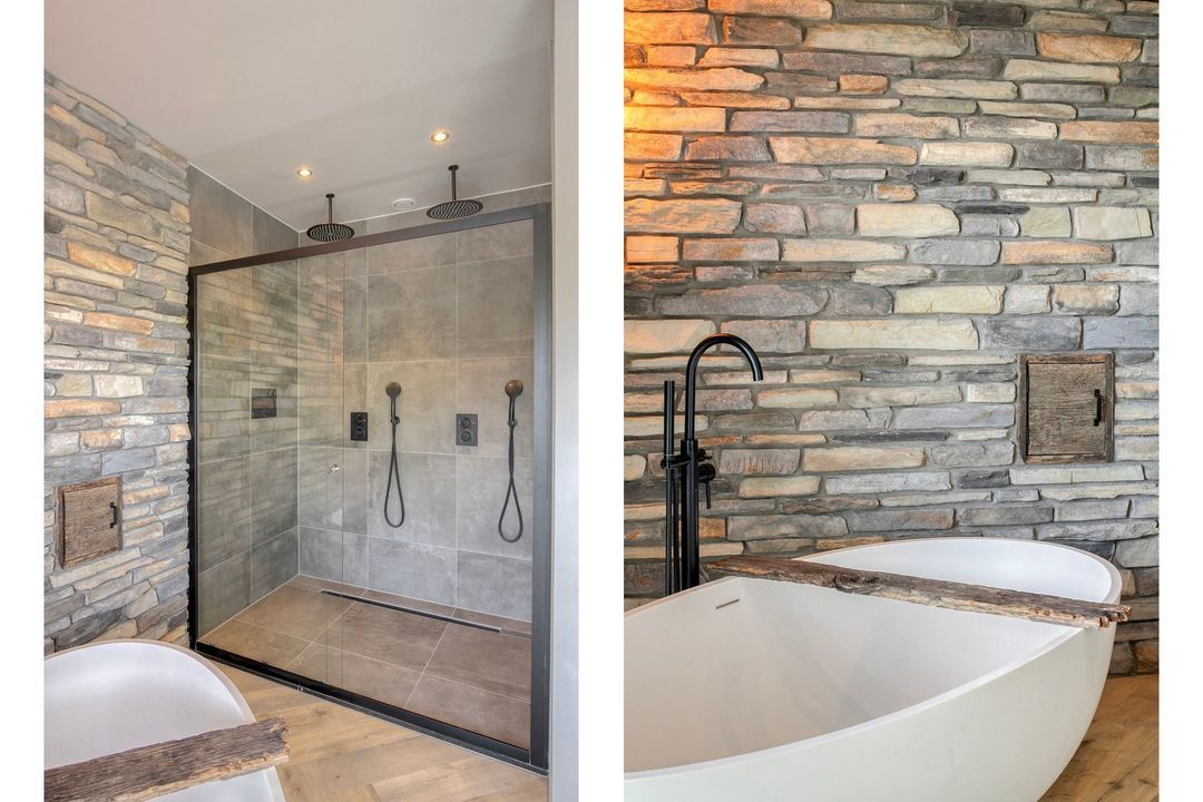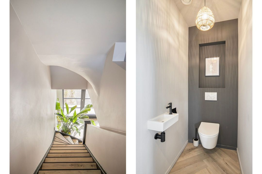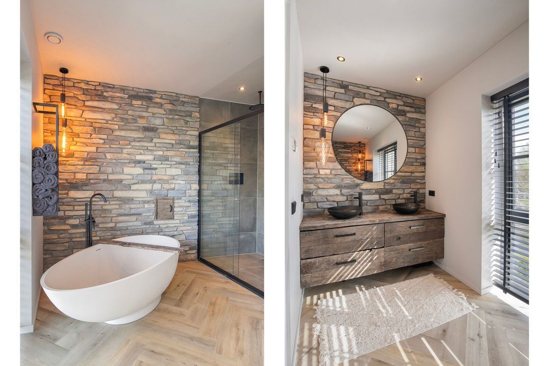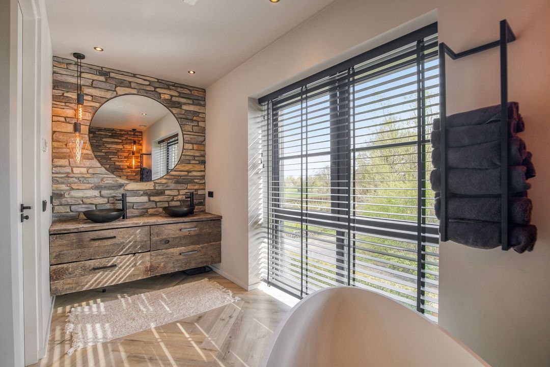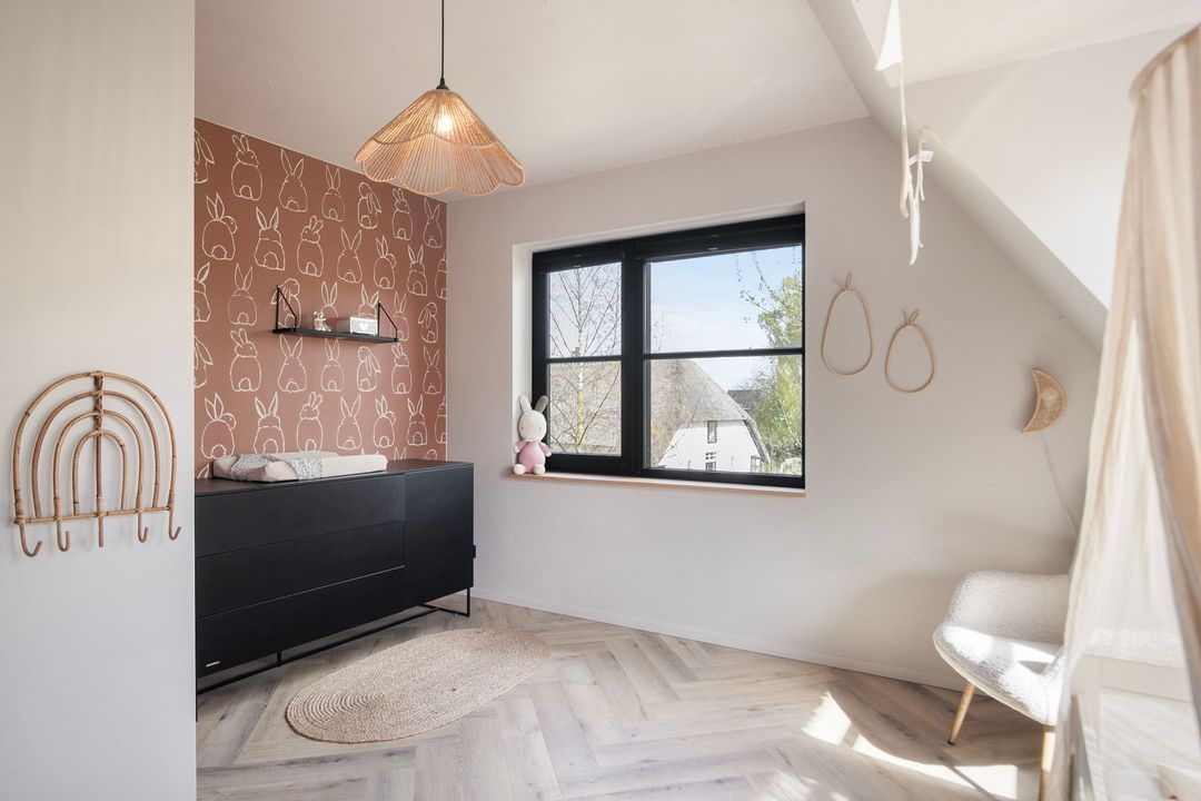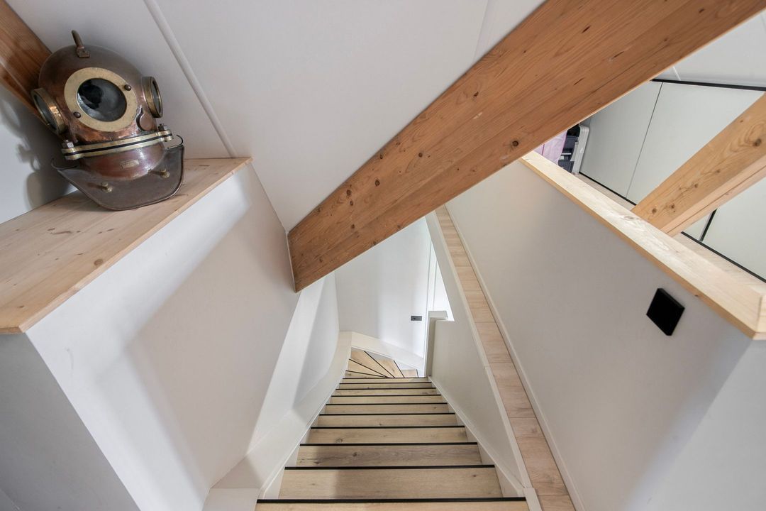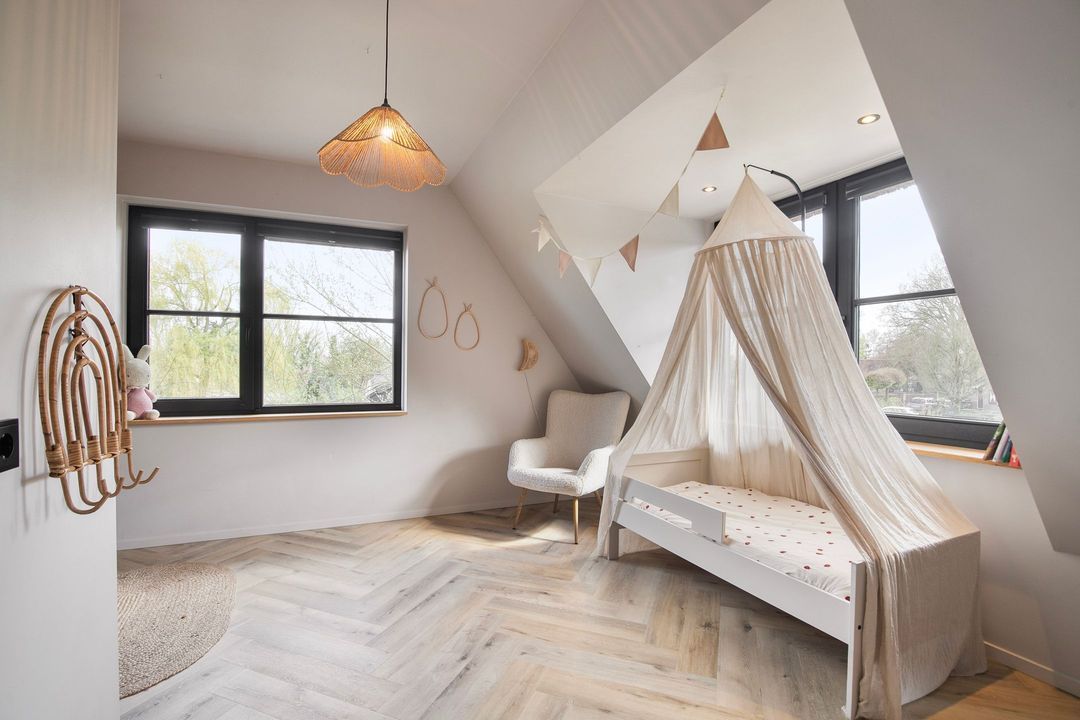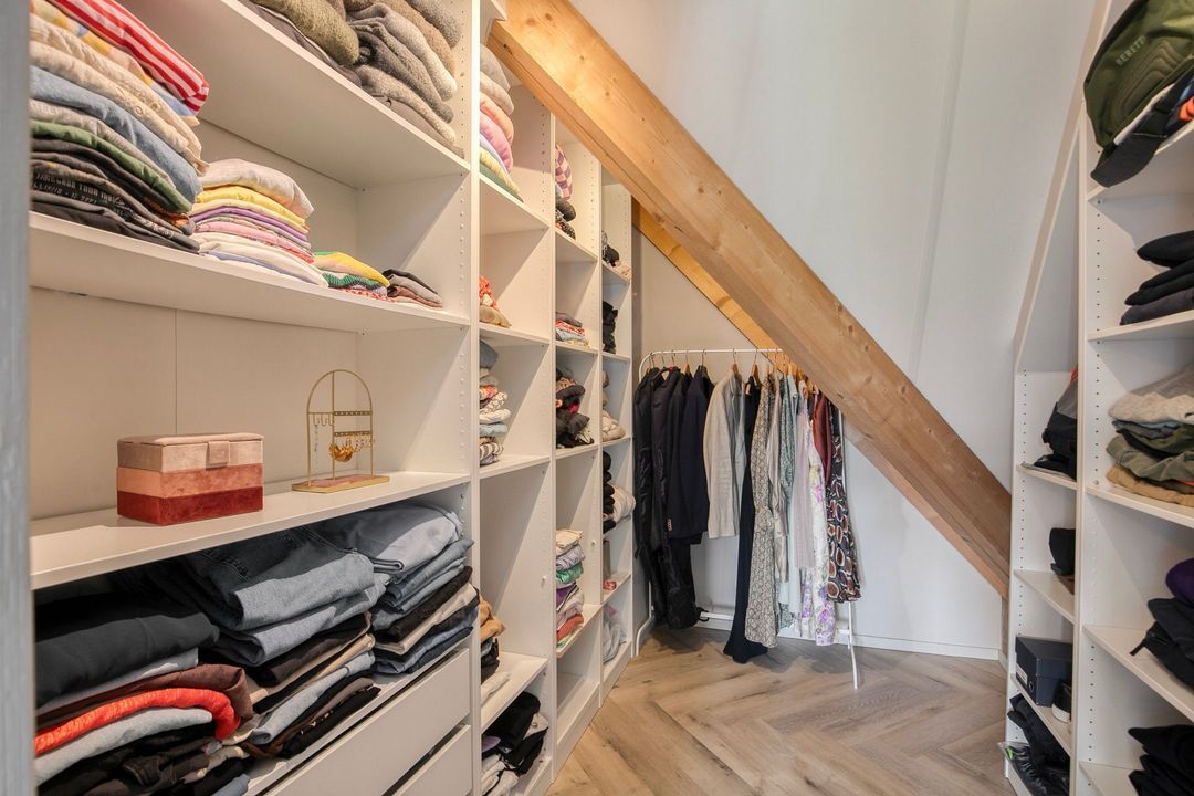 Op de eerste verdieping bevinden zich drie ruime slaapkamers, een apart toilet en een luxe badkamer voorzien van een inloopdouche met dubbele douche, vrijstaand ligbad en een stijlvol wastafelmeubel. Een bijzonder praktisch detail is de waskoker die rechtstreeks uitkomt in de wasruimte op de begane grond.