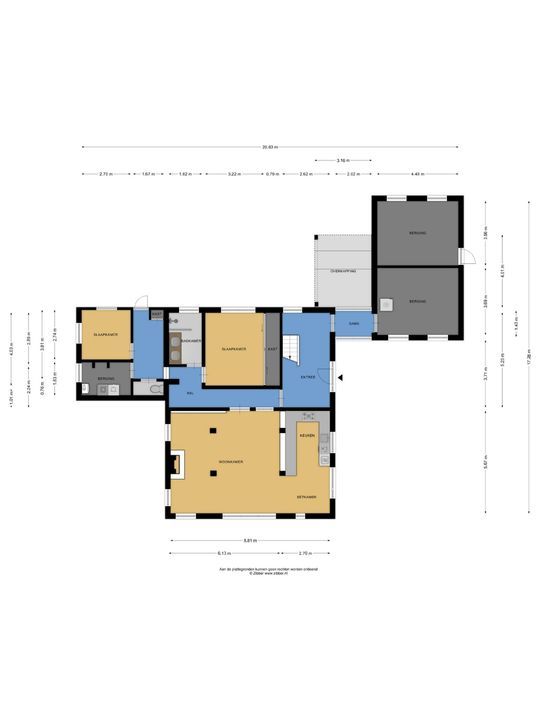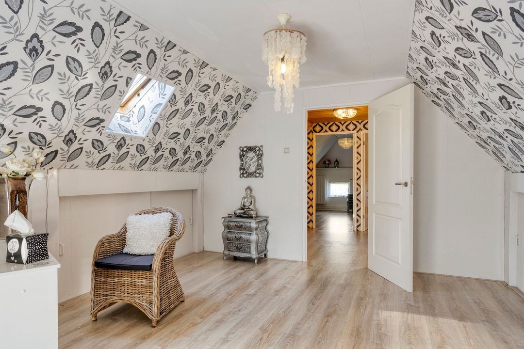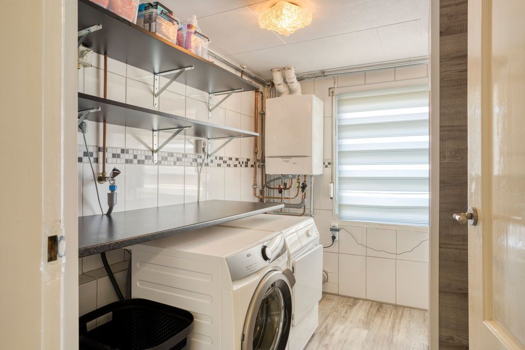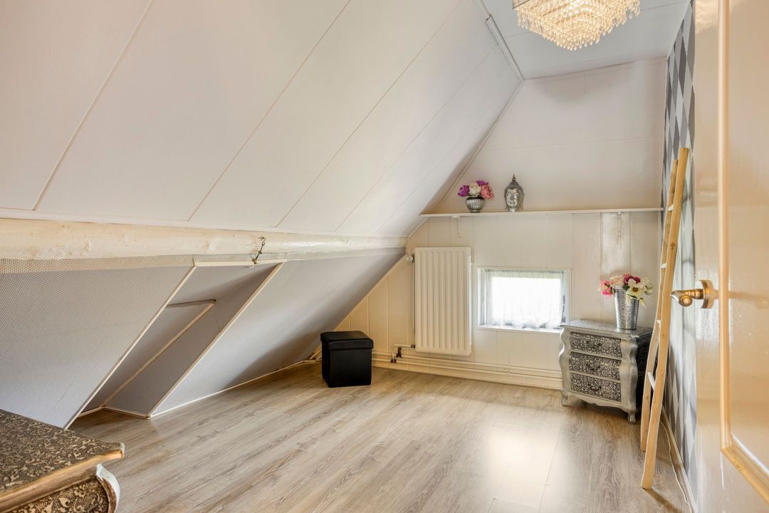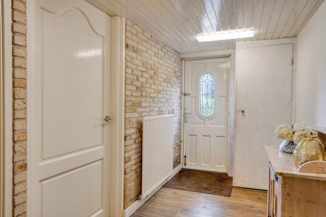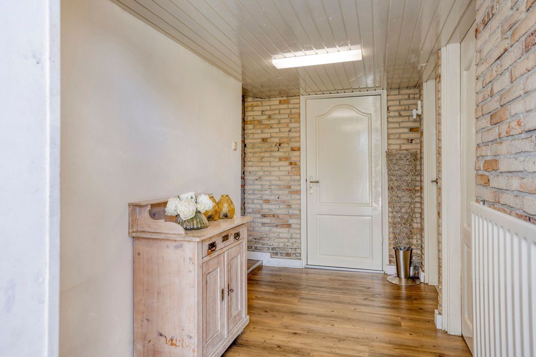 De uitbouw aan de rechterzijde wordt momenteel gebruikt als dubbele berging, maar biedt ook mogelijkheden om bij de woonruimte te betrekken.