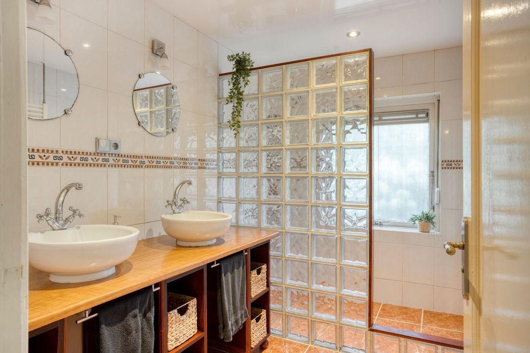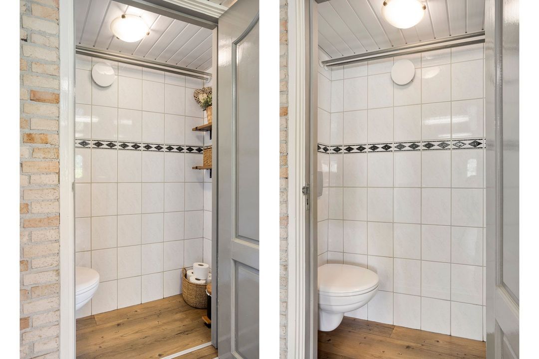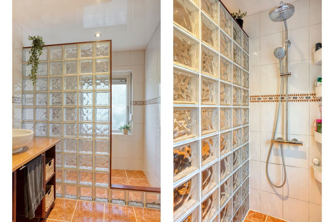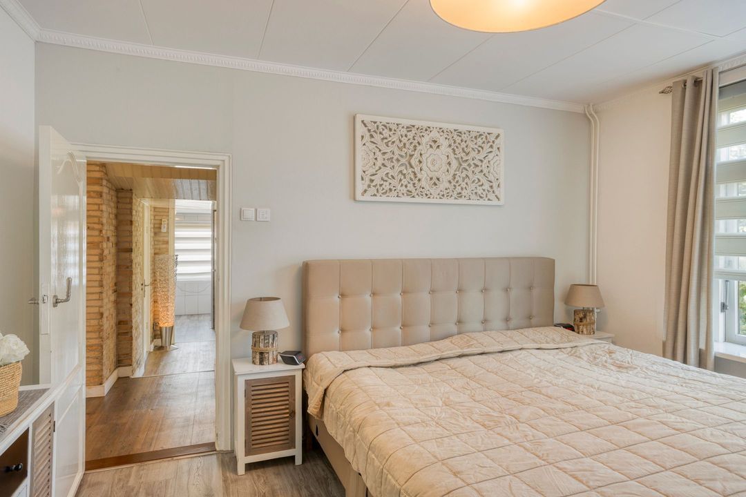 Via de hal met toilet bereikt u aan de achterzijde de slaapkamer met kastenwand en aansluitend een badkamer met inloopdouche en dubbele wastafel. In het aangebouwde bakhuis bevindt zich een praktische bijkeuken met wasmachineaansluiting en werk- of slaapkamer.