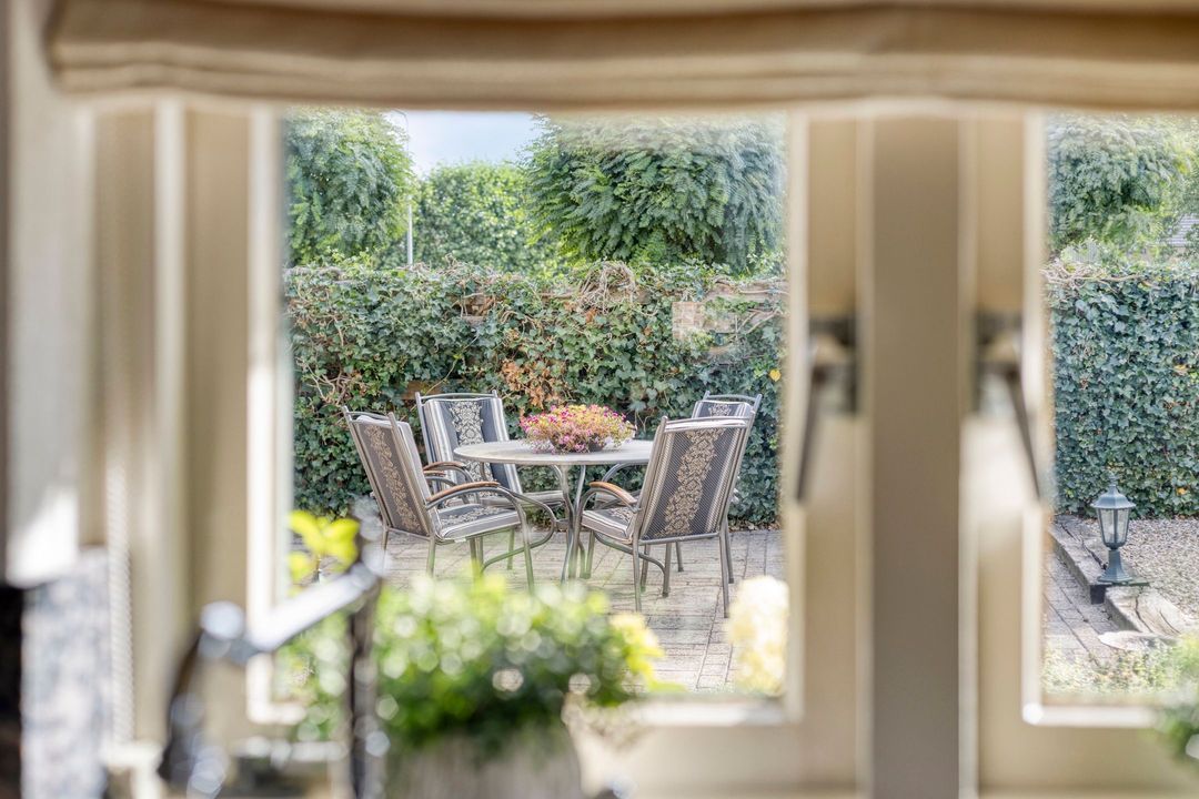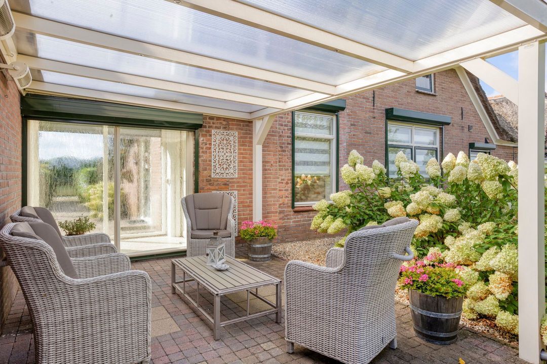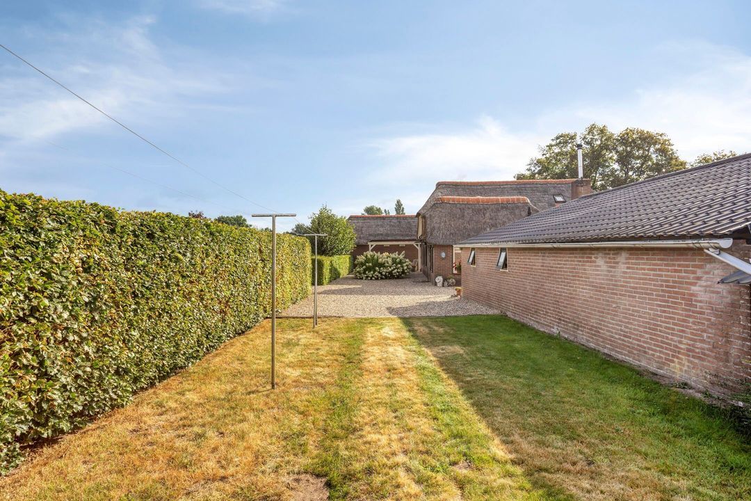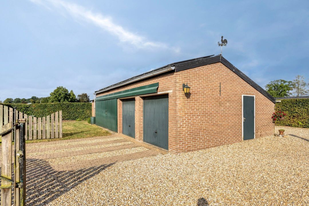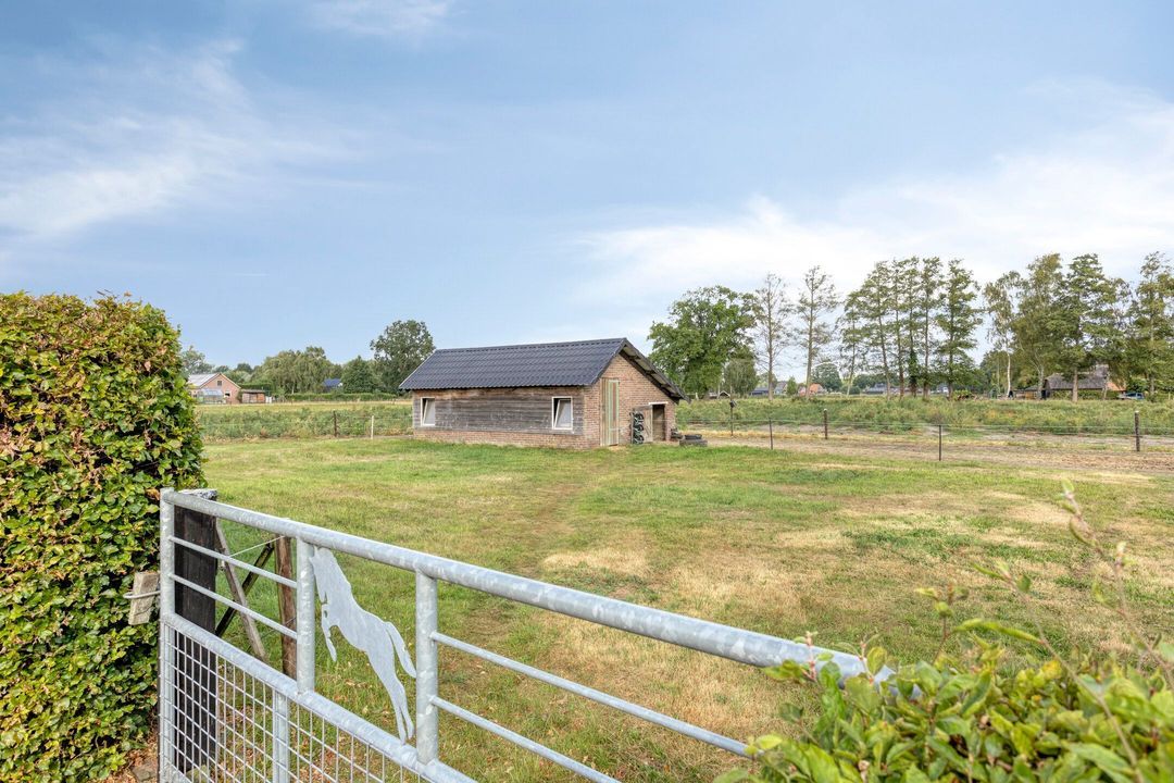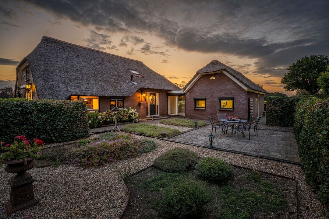 Het perceel beschikt over een rondom verzorgde tuin, inclusief een zonneterras aan de zijkant van de tuin. Daarnaast is er een royale oprit met ruimte voor meerdere auto’s en aan de achterzijde een veranda met prachtig uitzicht over het eigen weiland. Voor het beregenen van de tuin is een grondwaterpomp aanwezig.