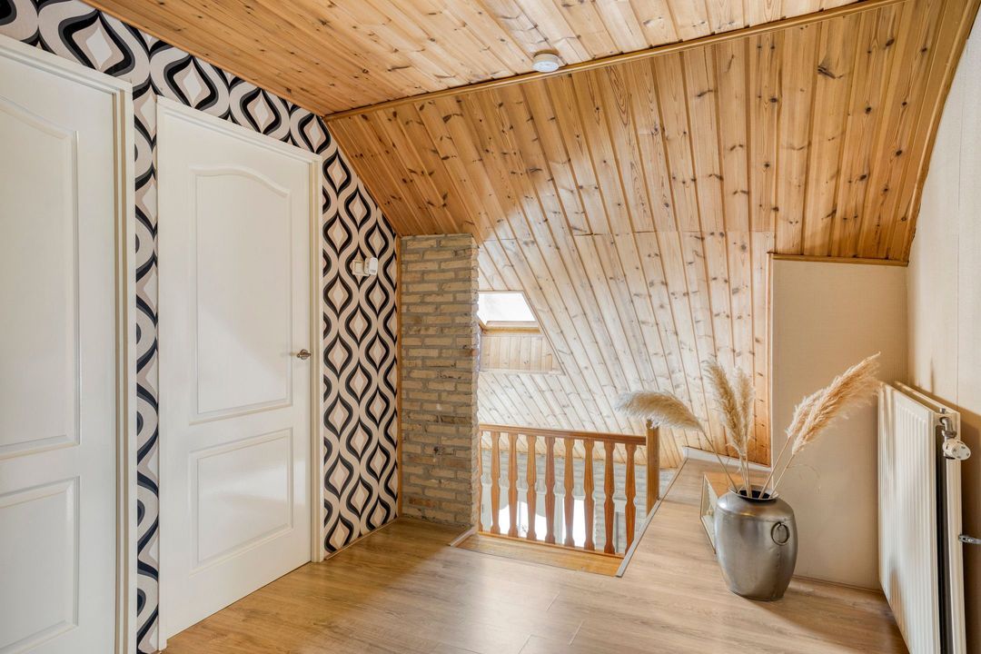 Via een fraaie houten trap bereikt u de verdieping met een overloop, drie ruime slaapkamers en een berging.