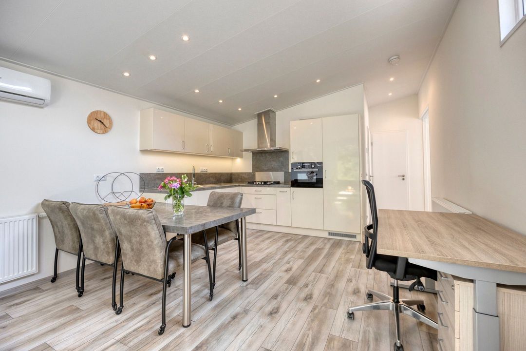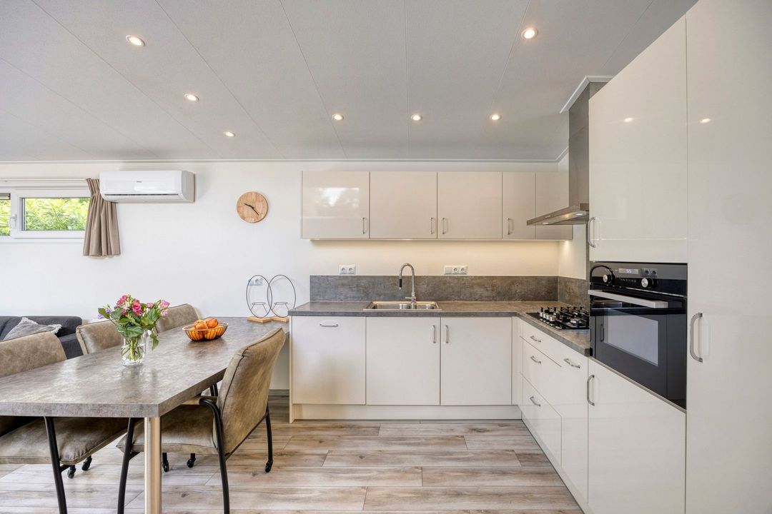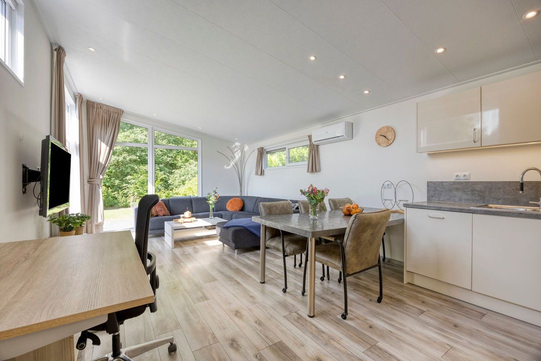 Het chalet, gebouwd in 2021, biedt een combinatie van comfort en functionaliteit. Bij binnenkomst valt direct de ruime, lichte woonkamer op, met grote raampartijen die een weids uitzicht bieden op het omliggende groen. De moderne keuken is van alle gemakken voorzien en nodigt uit tot gezellige kookmomenten. Aansluitend vindt u een sfeervolle zithoek, de ideale plek om na een dag in de natuur te ontspannen.
