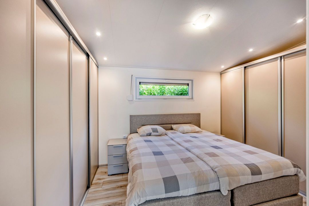 Met een comfortabele slaapkamer en een royale badkamer biedt het chalet alle ruimte. Naast de badkamer vindt u een separaat toilet en een wasruimte. De inpandige berging/bijkeuken biedt volop mogelijkheden voor het opbergen van uw spullen. Liever een extra slaapkamer? Dan kan deze ruimte eenvoudig worden aangepast.