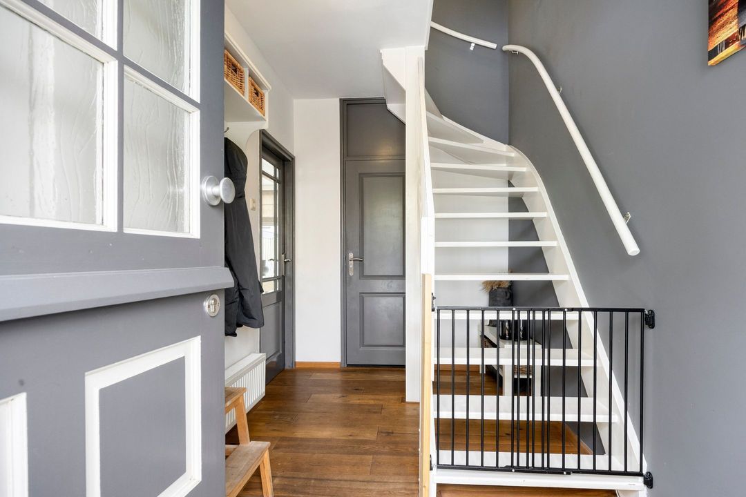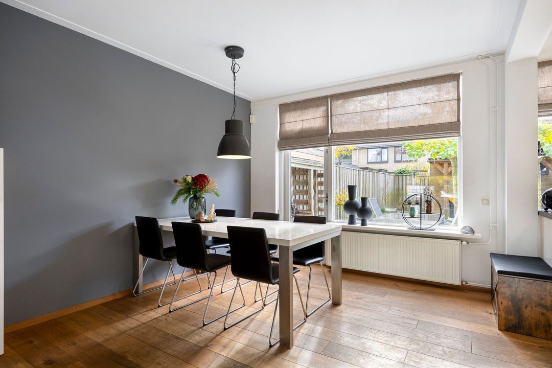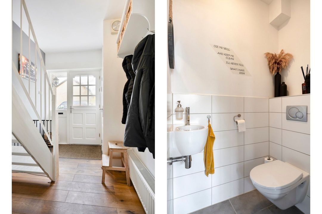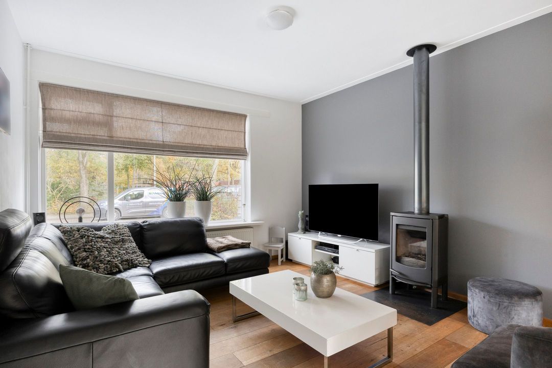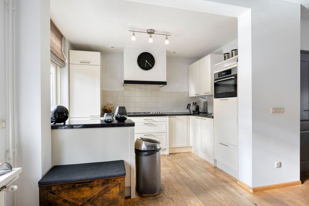 Ruime hal met garderobe, trapopgang en meterkast. Modern toilet met fonteintje. De royale woonkamer is voorzien van een sfeervolle eikenhouten vloer en een houtkachel. Verder is er een handige provisiekast aanwezig. De open keuken is in hoekopstelling en is voorzien van diverse inbouwapparatuur en een tuindeur naar de achtertuin.