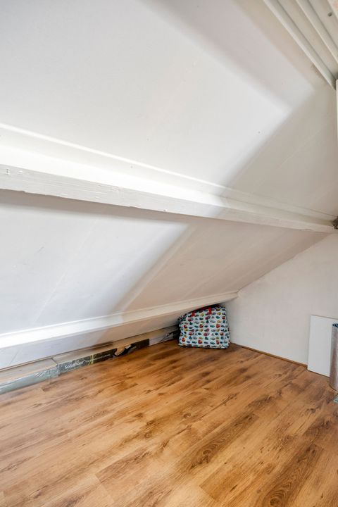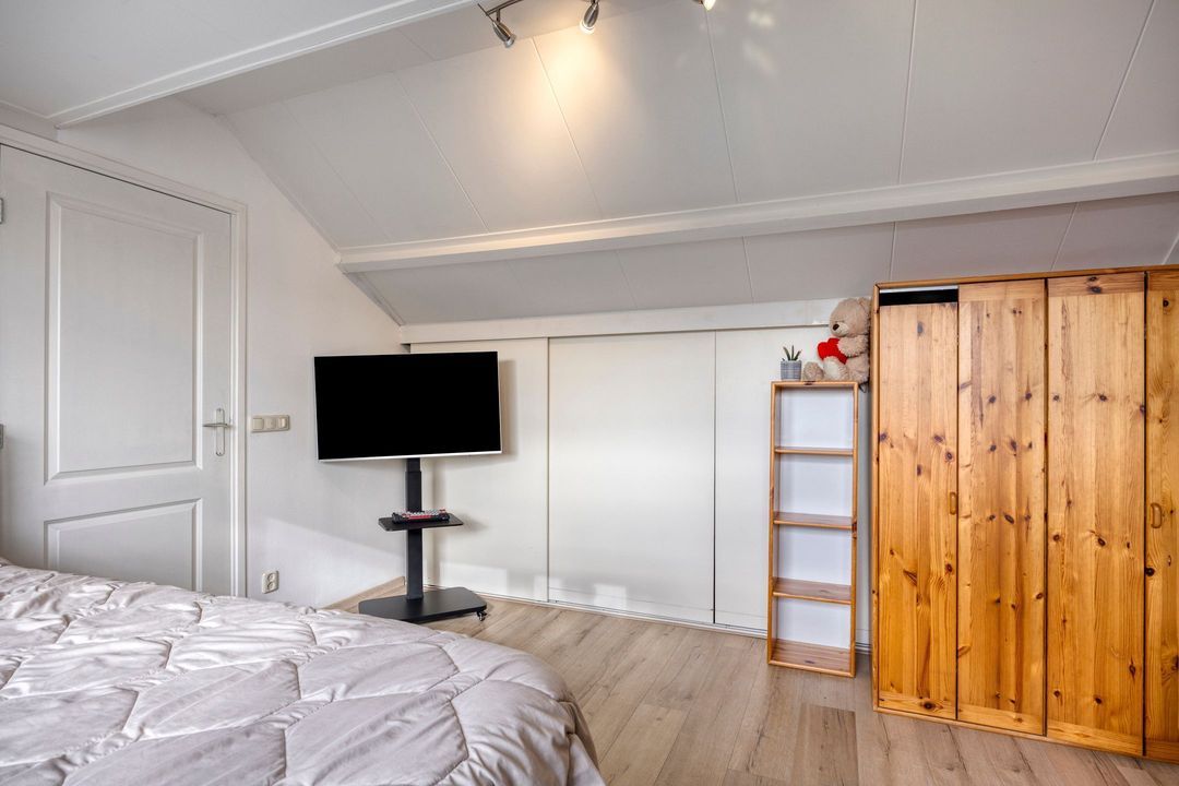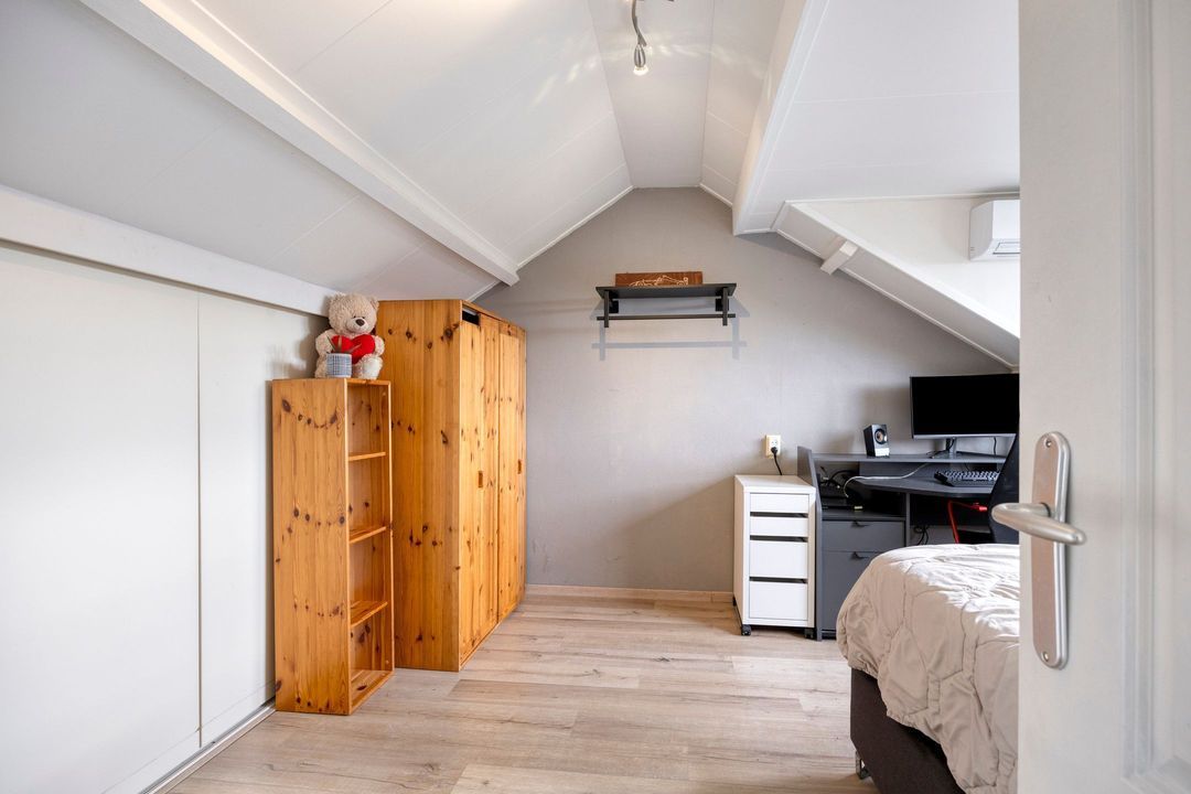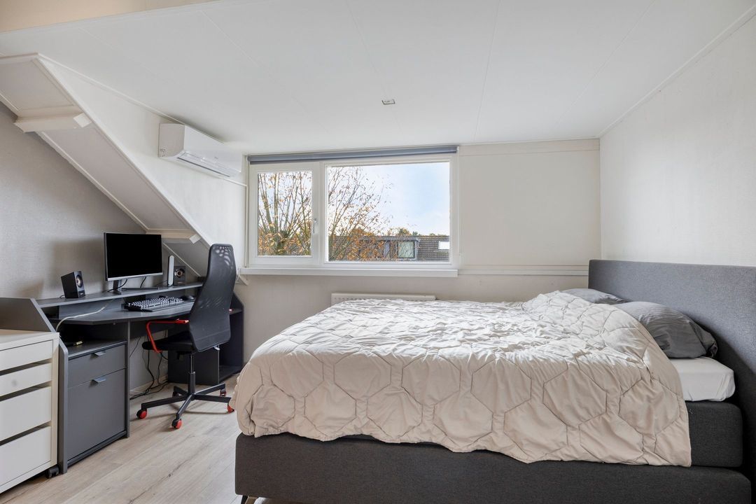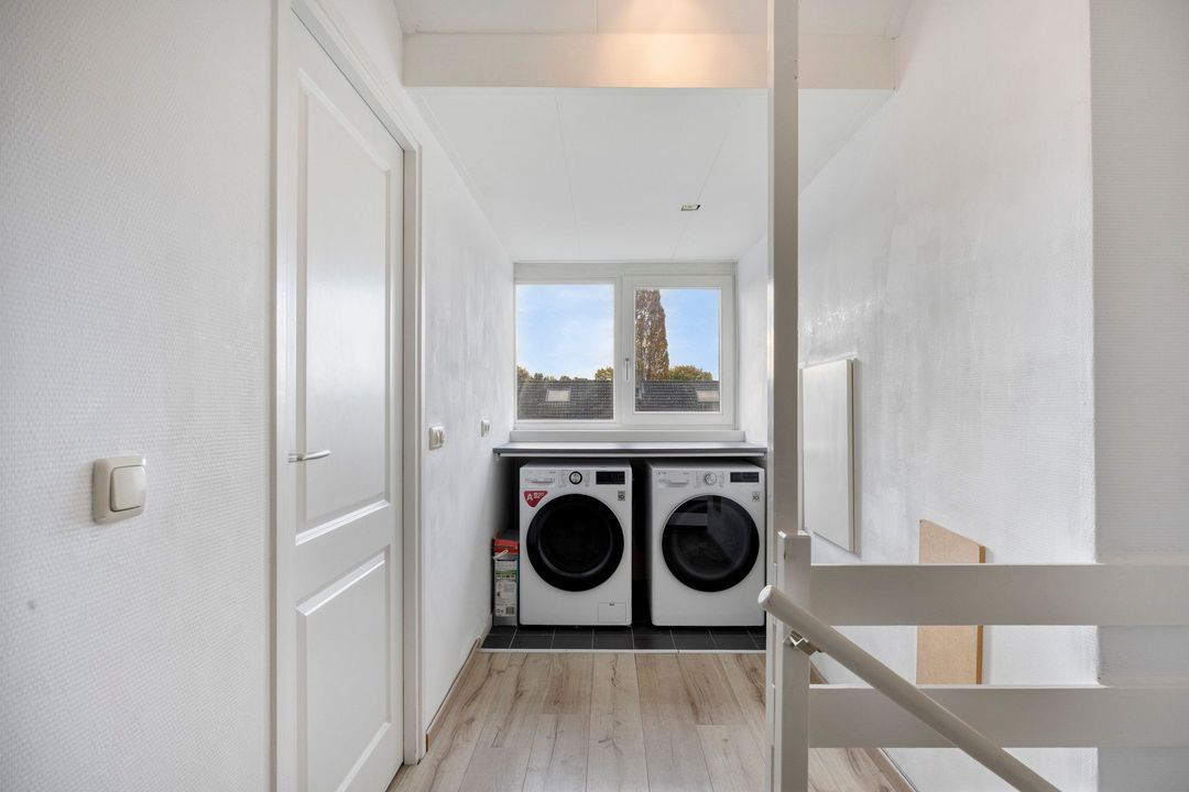 Overloop met aansluitingen voor wasmachine en droger, bergruimte met opstelling van de CV-ketel (Remeha, bouwjaar 2012) en een royale vierde slaapkamer met dakkapel en airconditioning, een ideale plek voor een tienerkamer, werkkamer of logeerruimte.