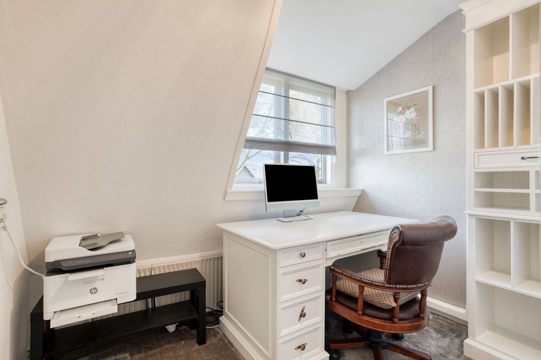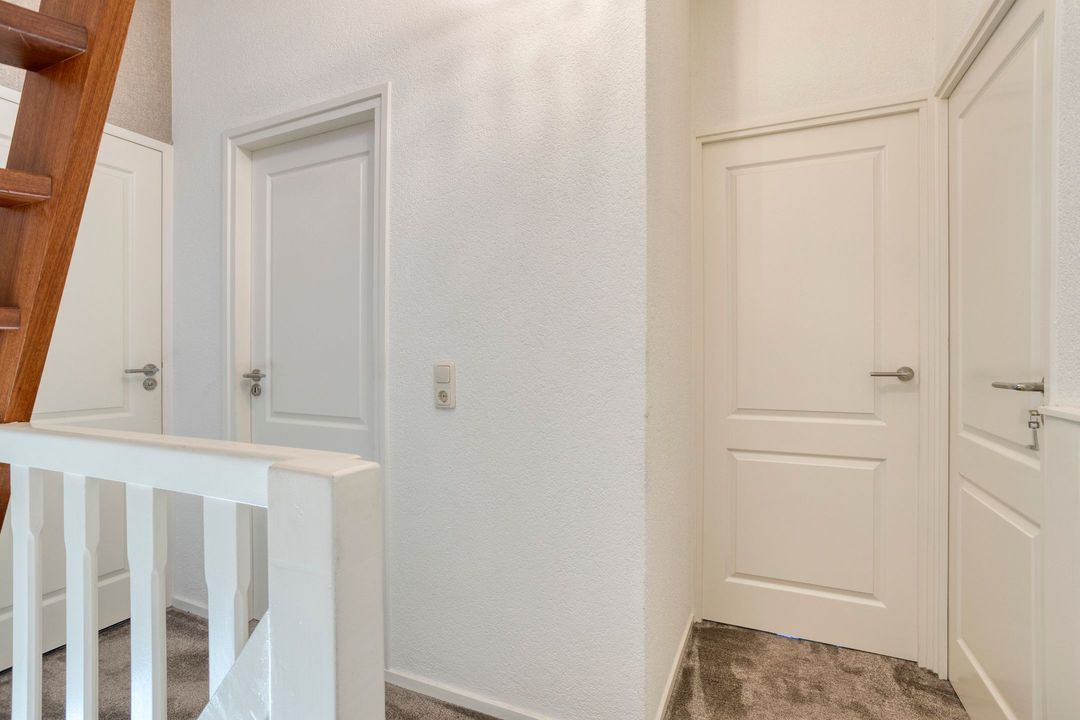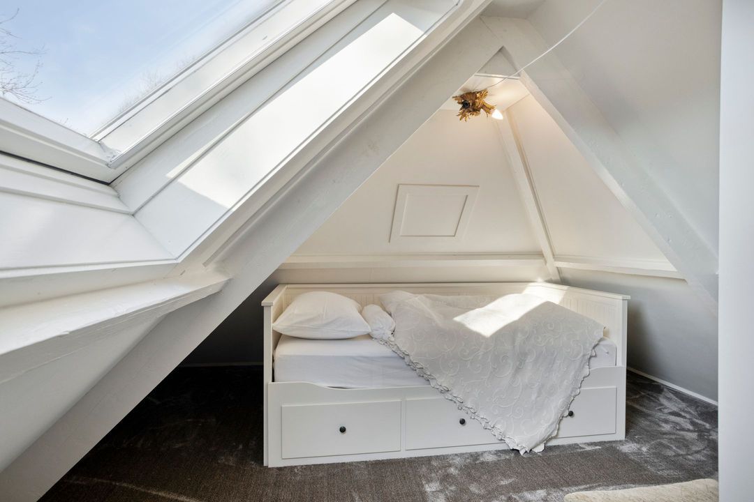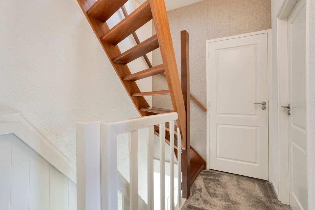 Via een vaste trap bereikt u de zolderverdieping. Deze biedt veel bergruimte en een extra (slaap)kamer – ideaal als hobbyruimte, werkplek of logeerkamer.