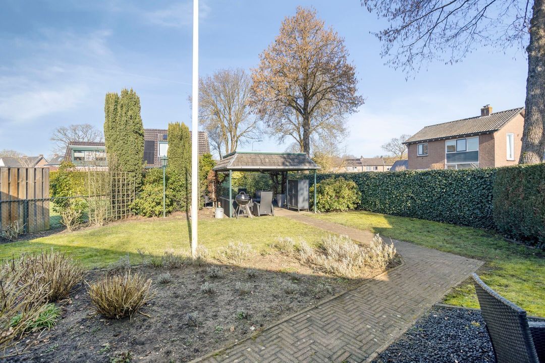 De verzorgde tuin is een van de grote pluspunten van deze woning. De royale oprit biedt parkeergelegenheid op eigen terrein. De diepe achtertuin biedt veel privacy en beschikt over een overdekt terras, waar u heerlijk kunt genieten van het buitenleven.