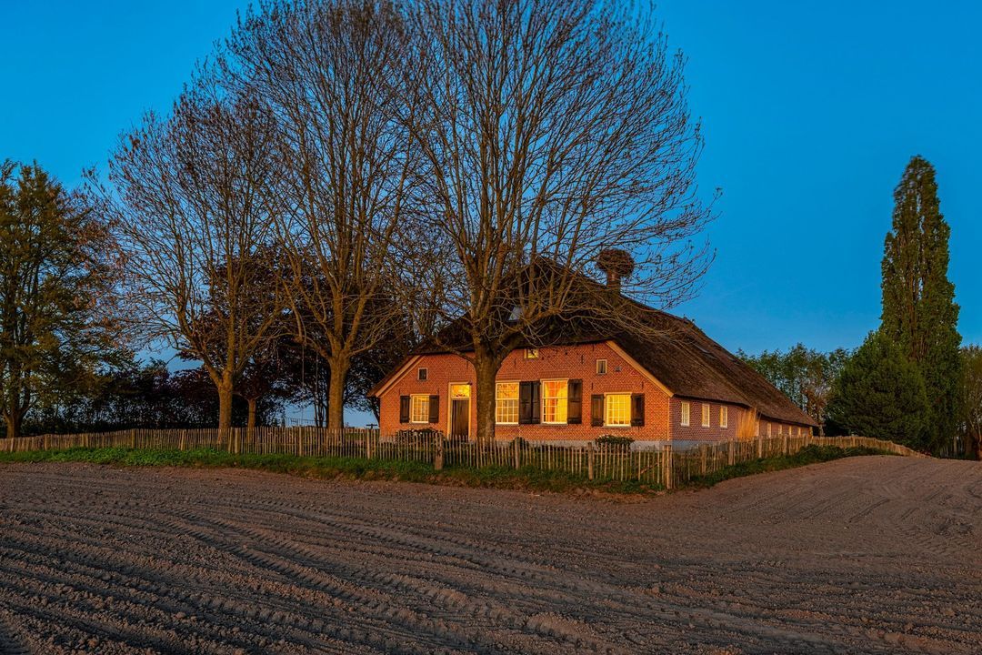 De woonboerderij kent haar oorsprong in de 17e eeuw en is in 2010 grondig gerenoveerd, geïsoleerd en gemoderniseerd, met behoud van het authentieke karakter. De klassieke raampartijen met roedeverdeling, gecombineerd met de luiken en de rieten kap, geven de woning haar markante uitstraling.