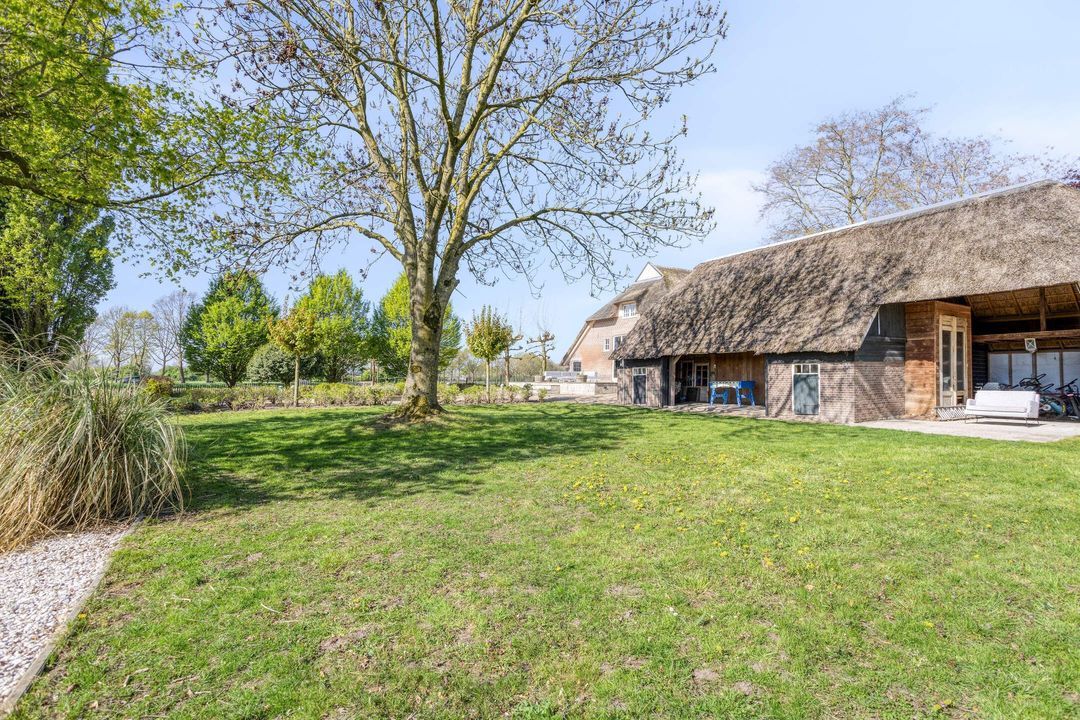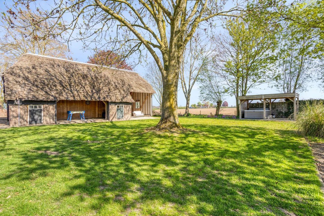 Op het erf bevinden zich meerdere bijgebouwen die het geheel compleet maken. De ruime, vrijstaande schuur is opgetrokken in steen met gepotdekseld hout en voorzien van een rieten dak. Deze biedt volop mogelijkheden voor opslag, hobbyruimte of het stallen van een camper of caravan.