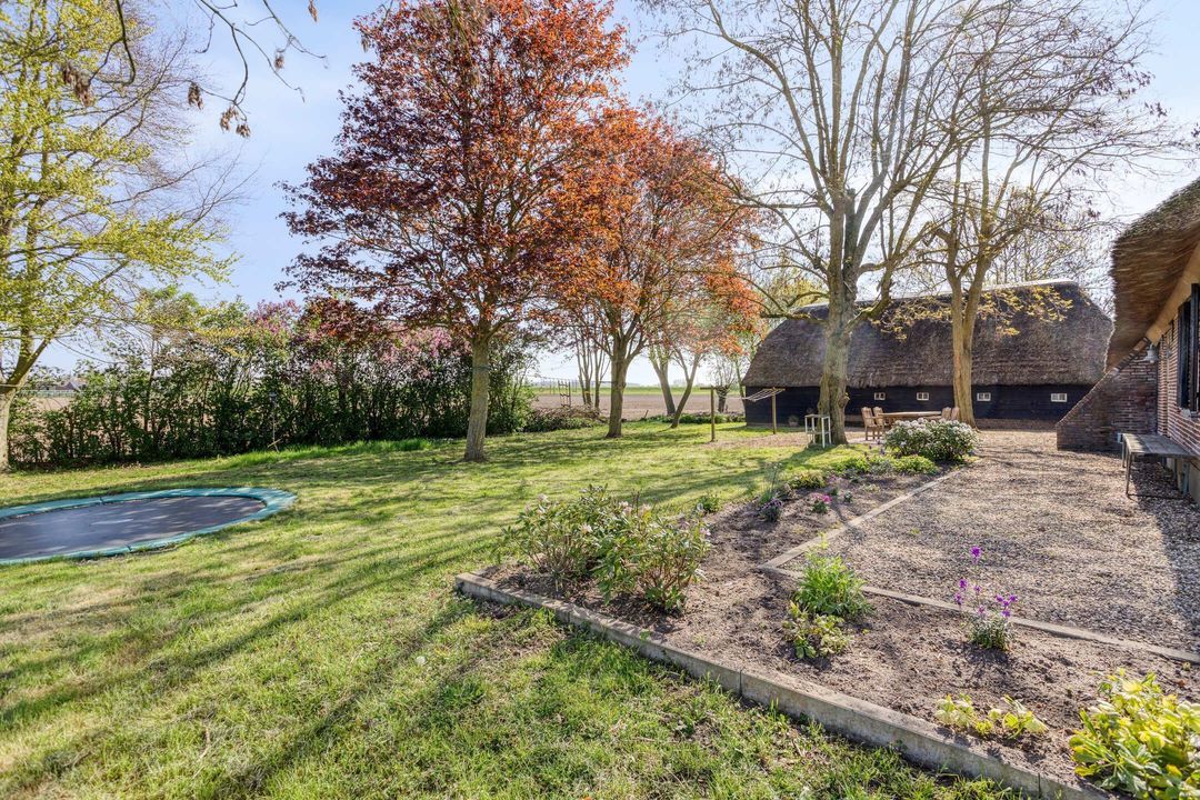 Rondom de woning is een fraai aangelegde tuin die perfect aansluit bij het landelijke karakter van het geheel. Op diverse plekken zijn water- en lichtpunten aangebracht, wat het buitenleven extra comfortabel maakt. Hier geniet u in alle rust van weidse vergezichten, prachtige wolkenluchten en de seizoenen die zich in alle facetten tonen.