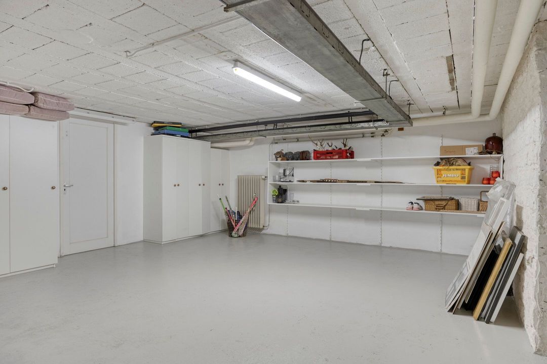Het souterrain is van een indrukwekkende omvang, met een totale oppervlakte van circa 260 m² en een stahoogte van ruim twee meter. Hier vindt u onder meer een royale fitnessruimte met daglichttoetreding via een koekoek, de technische ruimte met cv-installatie en zwembadtechniek, een werkplaats, archiefruimte en een enorme multifunctionele ruimte van circa 20 bij 5,5 meter. Deze laatste is nu in gebruik als autostalling en berging, bereikbaar via een hellingbaan aan de achterzijde van het huis. Een unieke kans voor een autoliefhebber of iemand die behoefte heeft aan een grote hobby- of werkruimte.