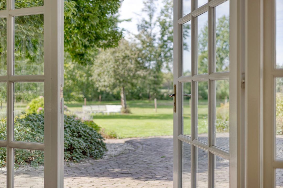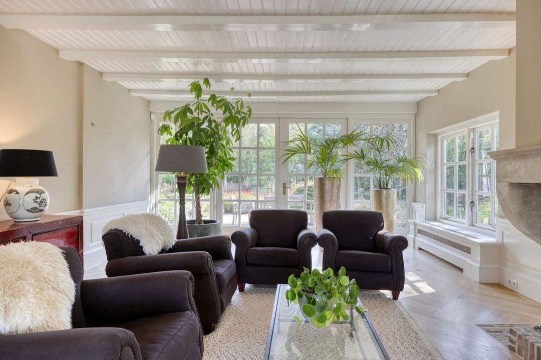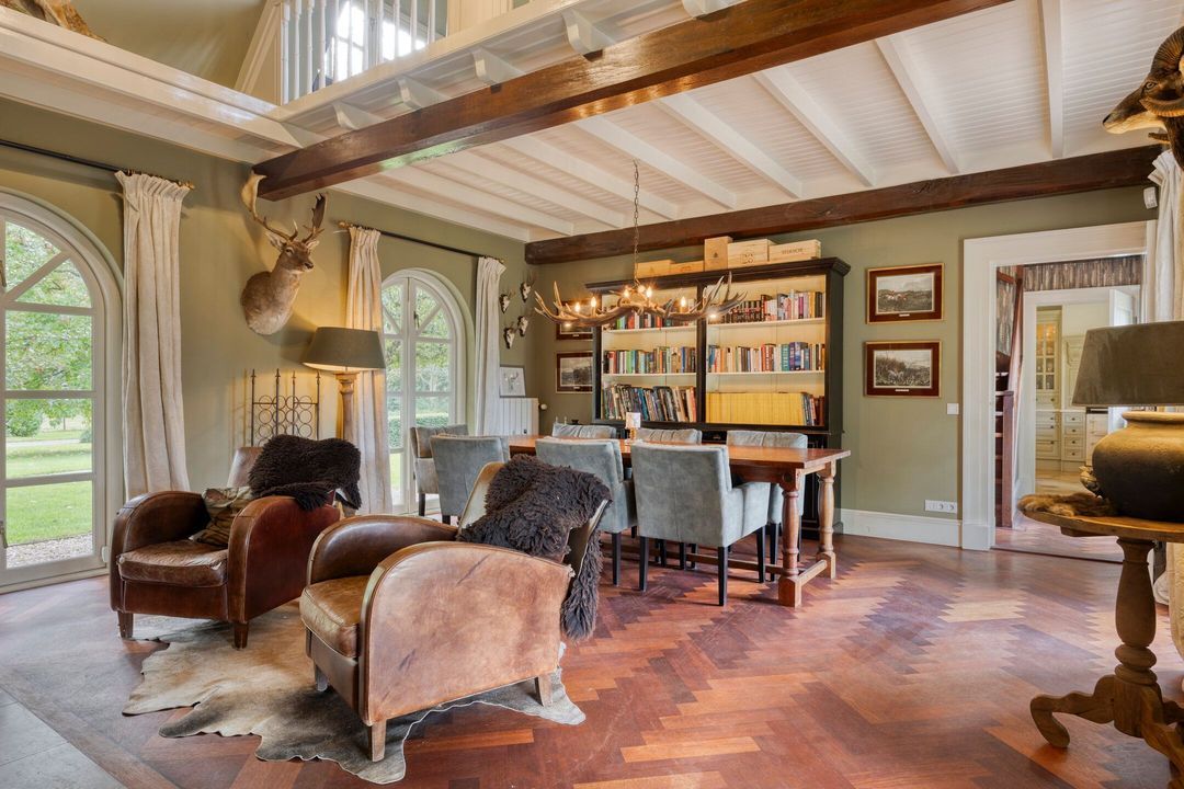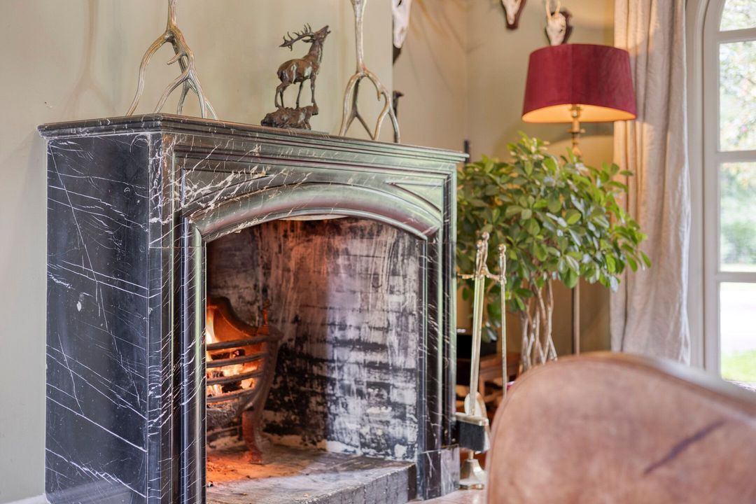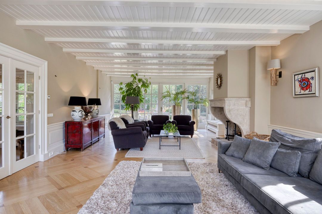 Bij binnenkomst in de woning valt direct de grandeur van de royale hal op. De fraaie eiken parketvloer in blokmotief, ingebouwde garderobekasten en een gastentoilet maken deze entree tot een stijlvol visitekaartje. Vanuit hier betreedt u de ruime living van circa 68 m² met een antieke schouw, open haard en openslaande deuren naar het zonnige terras op het zuidwesten. Het uitzicht over de tuin en omliggende weilanden is ronduit indrukwekkend en geeft direct het gevoel van vrijheid.