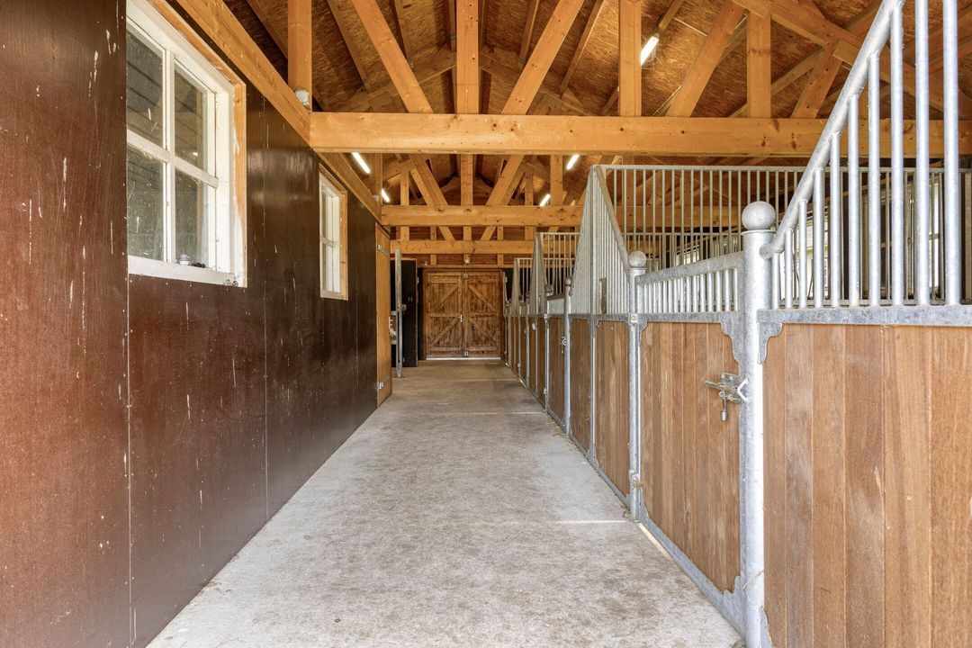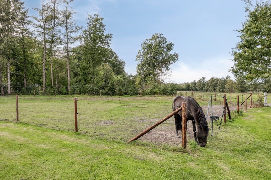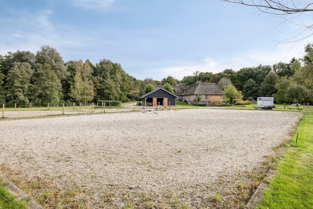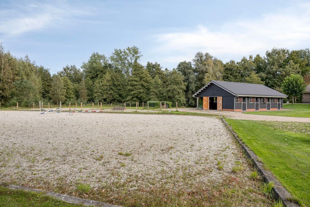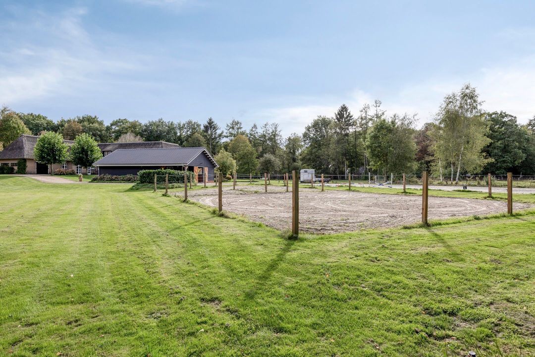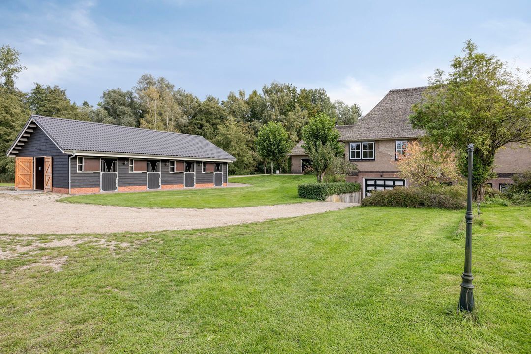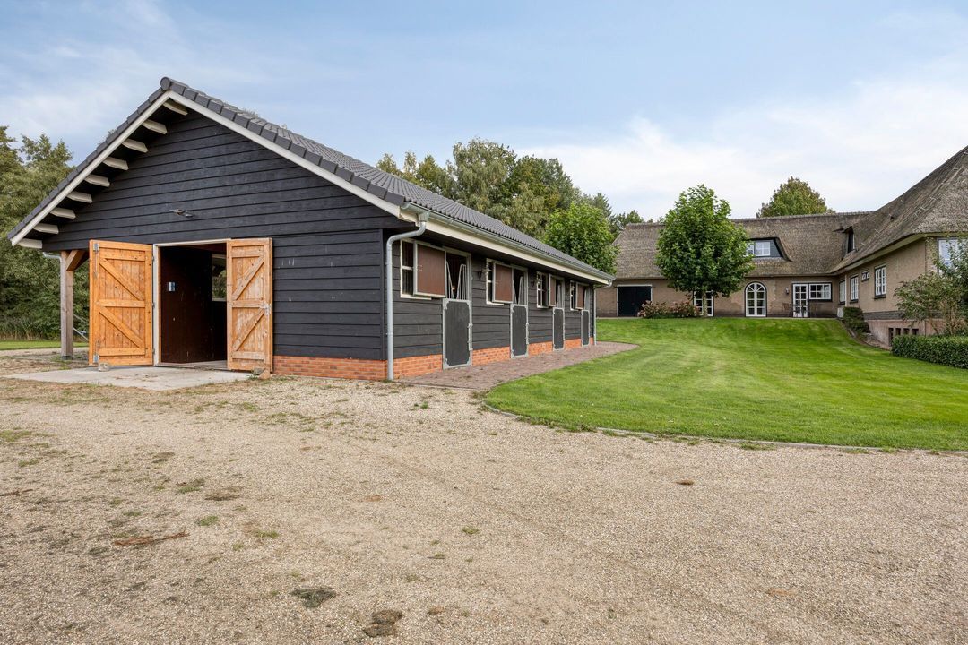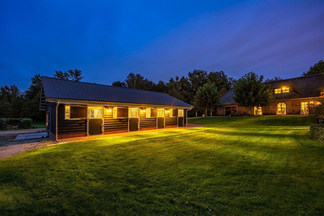 Voor paardenliefhebbers is er een eb en vloed rijbak van ca. 20 x 40, gedraineerde paddocks en een royaal houten bijgebouw met vier professionele stallen met zadelkamer, poetsplaats, hooiopslag en overkapping. De weilanden rondom het huis maken het geheel tot een compleet paardenobject van hoog niveau.