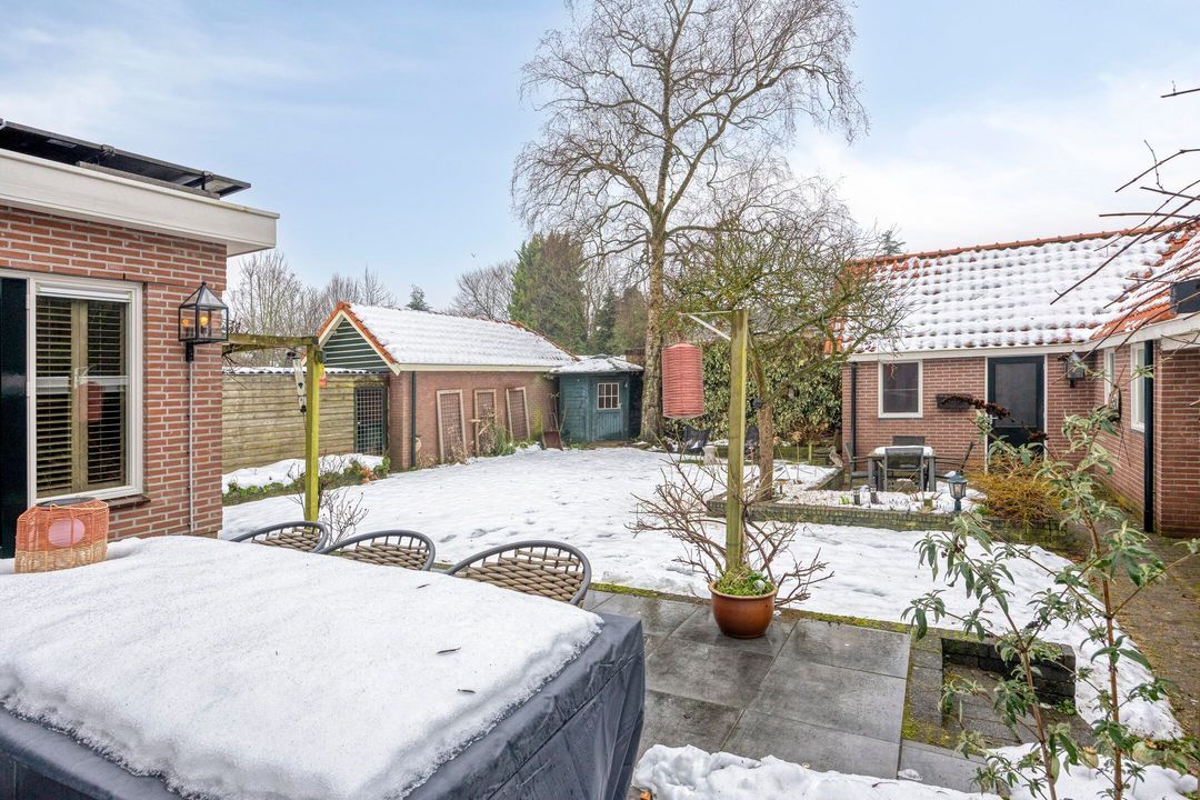 De met veel zorg en aandacht aangelegde tuin vormt een sfeervolle en groene oase met volop privacy. Door de gunstige ligging op het westen en de aanwezigheid van meerdere terrassen is er de hele dag door een fijne plek om van zon en buitenleven te genieten. Het elektrische zonnescherm zorgt daarbij voor extra comfort op warme dagen. Daarnaast beschikt het perceel over een ruime garage met vliering, smeerput en een carport, wat zorgt voor voldoende bergruimte en parkeergelegenheid. Ideaal!
