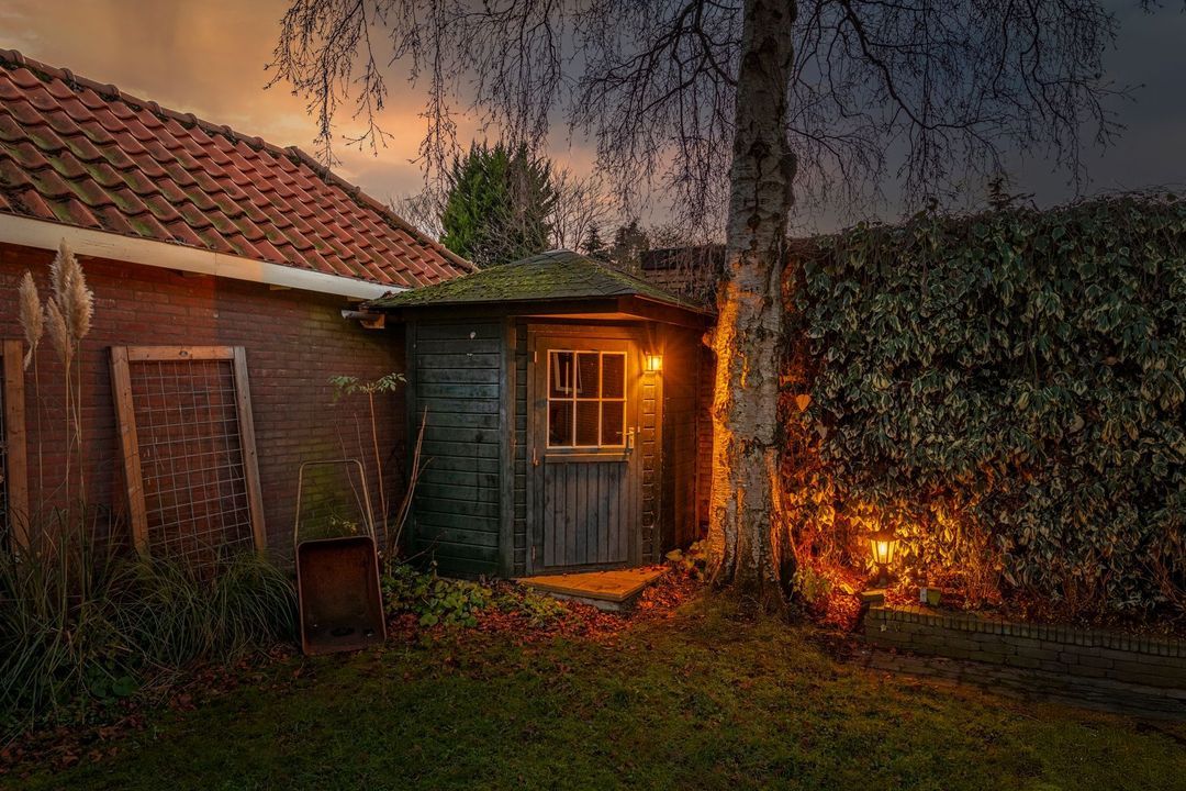 De met veel zorg en aandacht aangelegde tuin vormt een sfeervolle en groene oase met volop privacy. Door de gunstige ligging op het westen en de aanwezigheid van meerdere terrassen is er de hele dag door een fijne plek om van zon en buitenleven te genieten. Het elektrische zonnescherm zorgt daarbij voor extra comfort op warme dagen. Daarnaast beschikt het perceel over een ruime garage met vliering, smeerput en een carport, wat zorgt voor voldoende bergruimte en parkeergelegenheid. Ideaal!