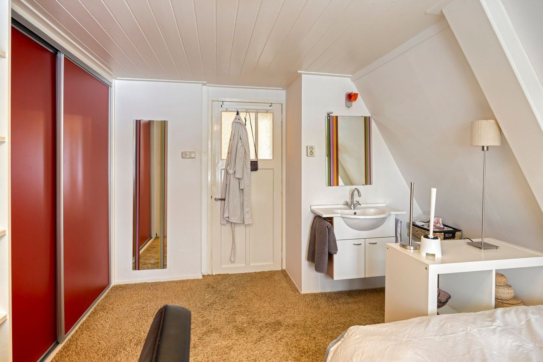 De woning is aan de achterzijde uitgebouwd met een serre en een royale slaapkamer met aansluitend een moderne badkamer (2024), voorzien van een douche, ligbad, wastafelmeubel en toilet. De badkamer is tevens ook voorzien van vloerverwarming. Onder de slaapkamer bevindt zich een souterrain, een veelzijdige ruimte die zich uitstekend leent voor gebruik als speelkamer, hobbyruimte of extra bergruimte en waar tevens de wasmachineaansluitingen zijn gesitueerd. In de hal is ook vloerverwarming aanwezig. Deze fraaie uitbreiding zorgt voor een prettige verbinding tussen binnen en buiten en biedt extra leefruimte beneden.